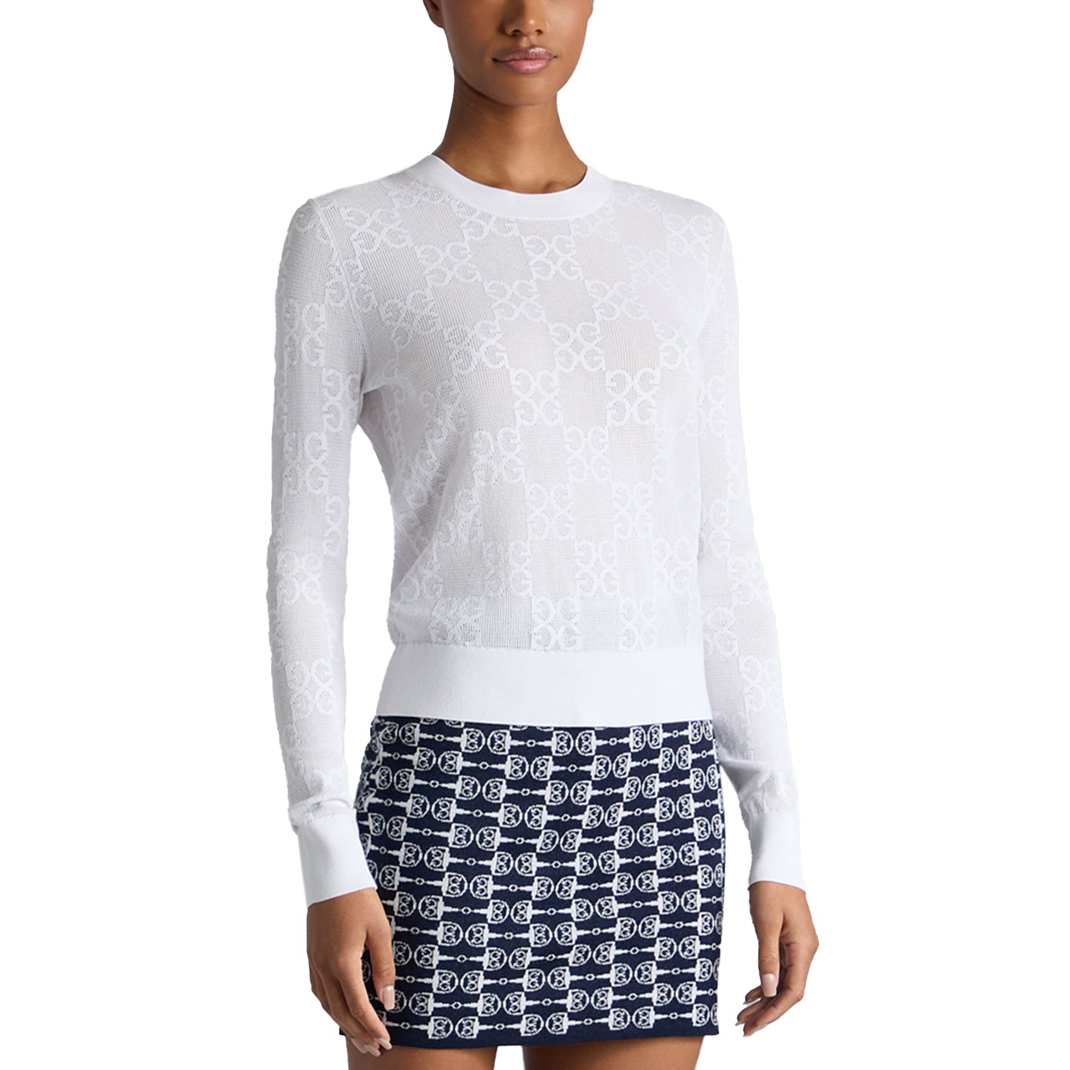 G/vor Frauen Pointelle G Crewneck Golfpullover - Schnee
