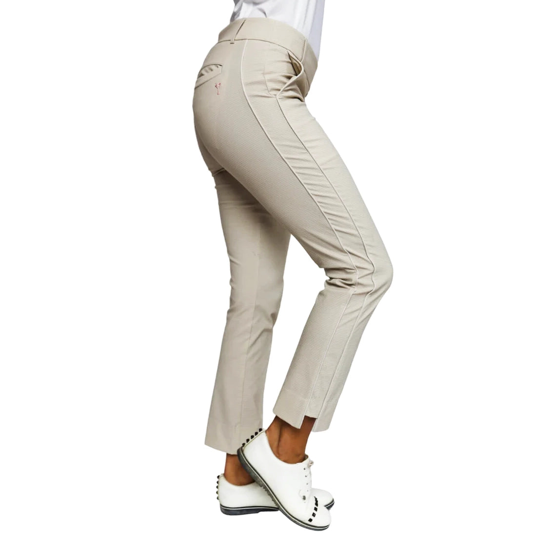 Golftini Damen Stretch -Knöchel -Golfhose - Khaki Houndstooth