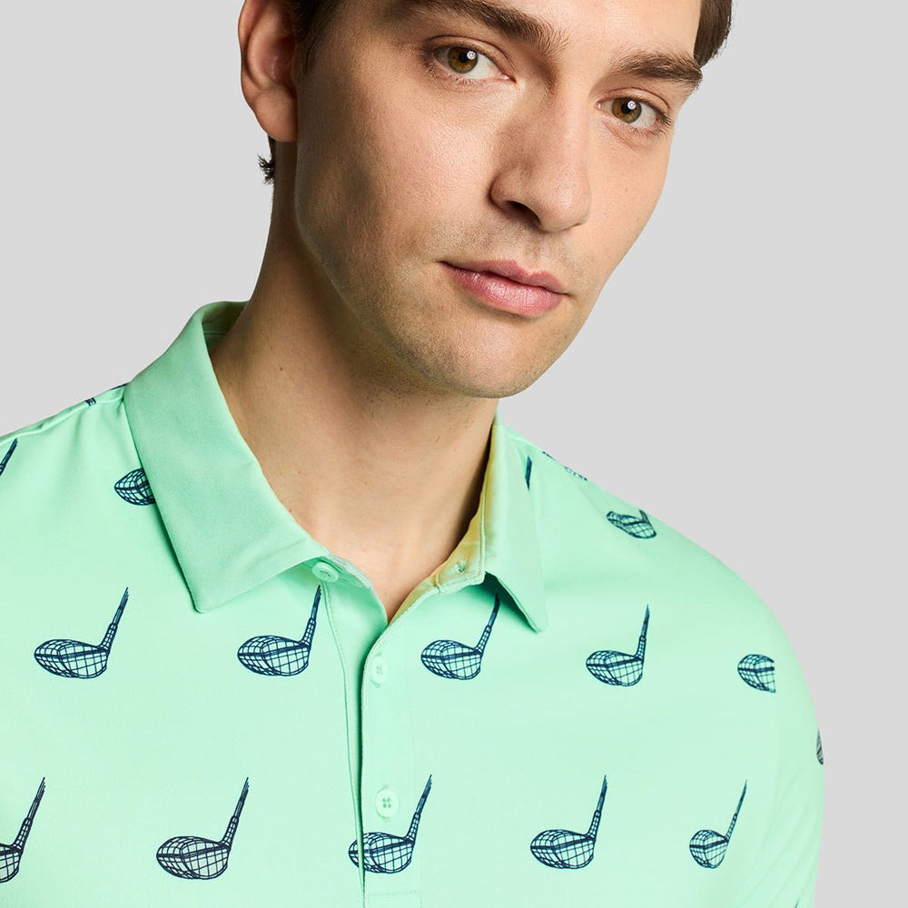 Raffinierte Details Beendet mit einer klassischen Drei-Knopf-Placket und einem subtilen Micro Golf Club-Druck für eine unverwechselbare, elegante Note.