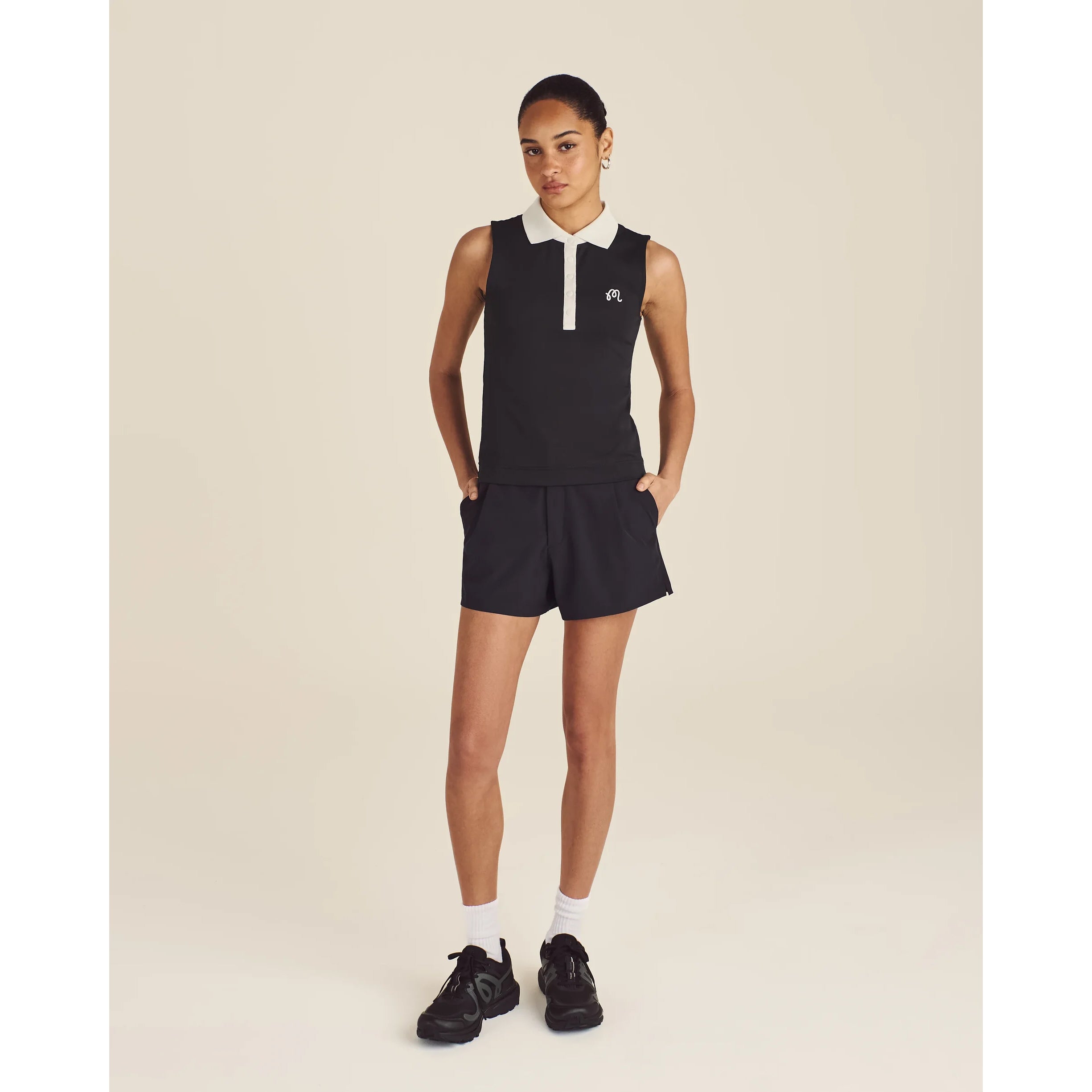 Malbon Damen Claudia Ärmelloses Golf-Poloshirt – Schwarz