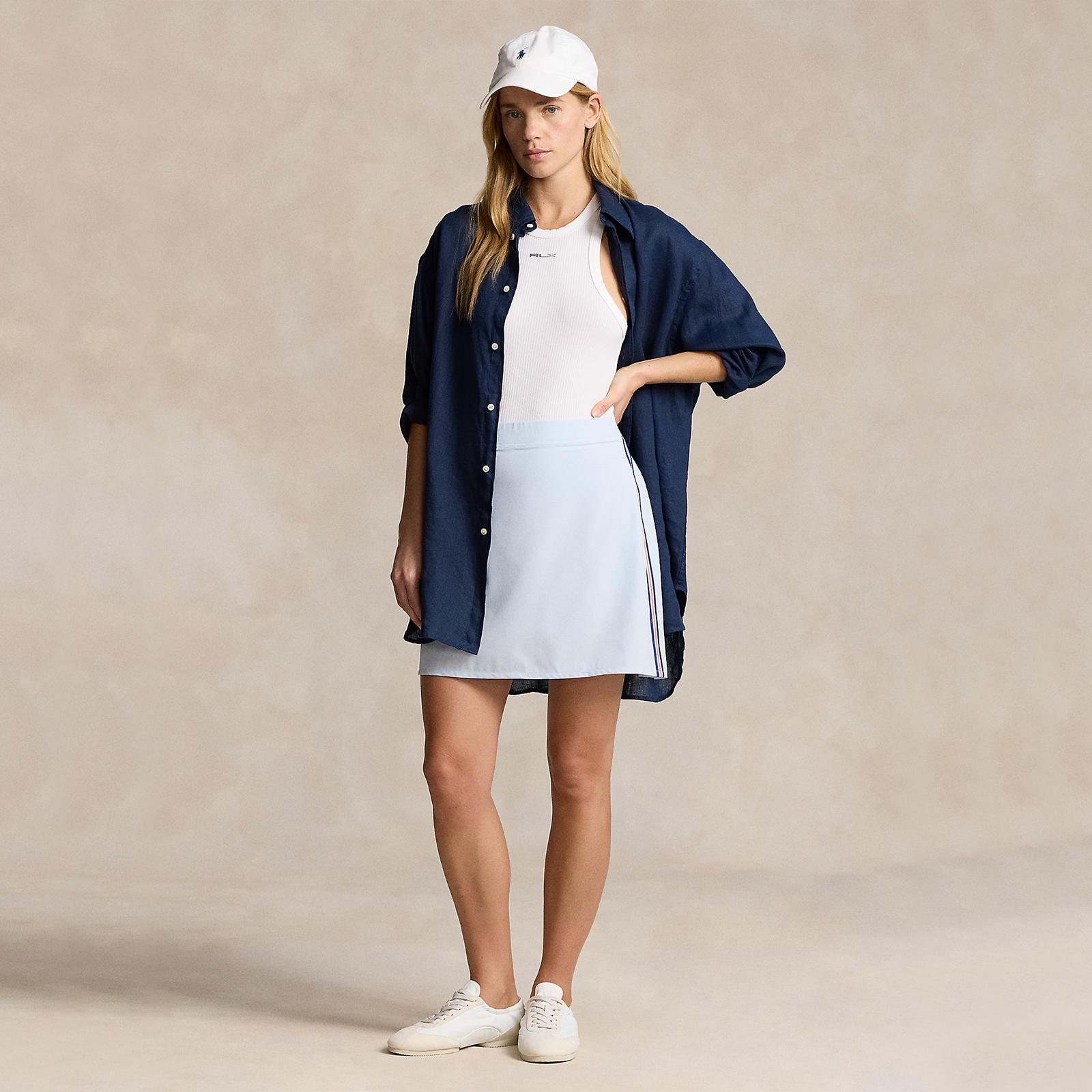 Diese neue Skorte aus RLX Ralph Lauren, die aus Performance Stretch -Stoff errichtet wurde, präsentiert Seitenstreifen und einen plissierten Rücken für zusätzlichen Stil.