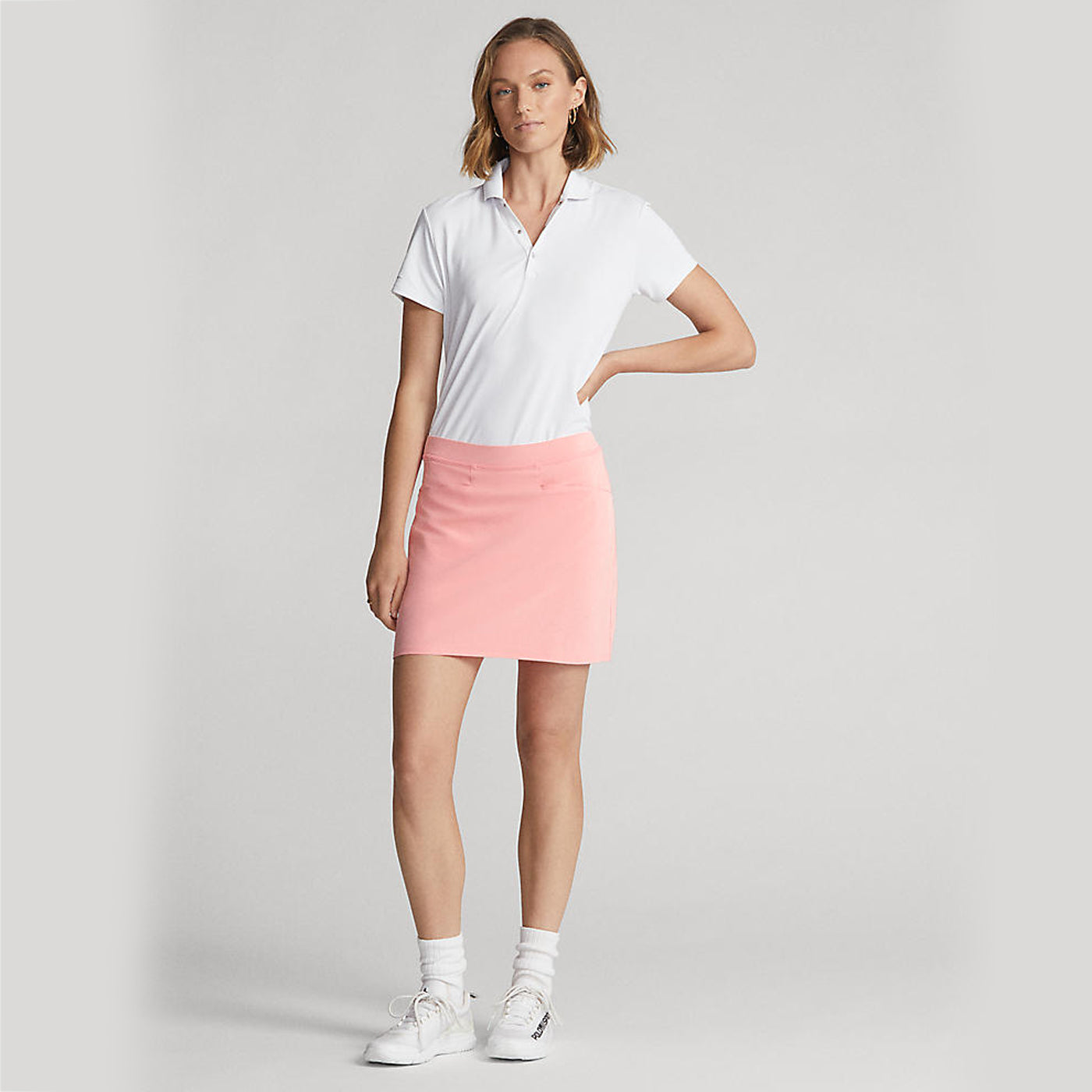 Dieser Skort aus einem Stretch-Stoff für einfache Bewegungspunkte verfügt über feuchtigkeitswachende Eigenschaften, die Sie während des ganzen Tages bequem halten. Die sportliche Silhouette wird durch Falten hinten verbessert.