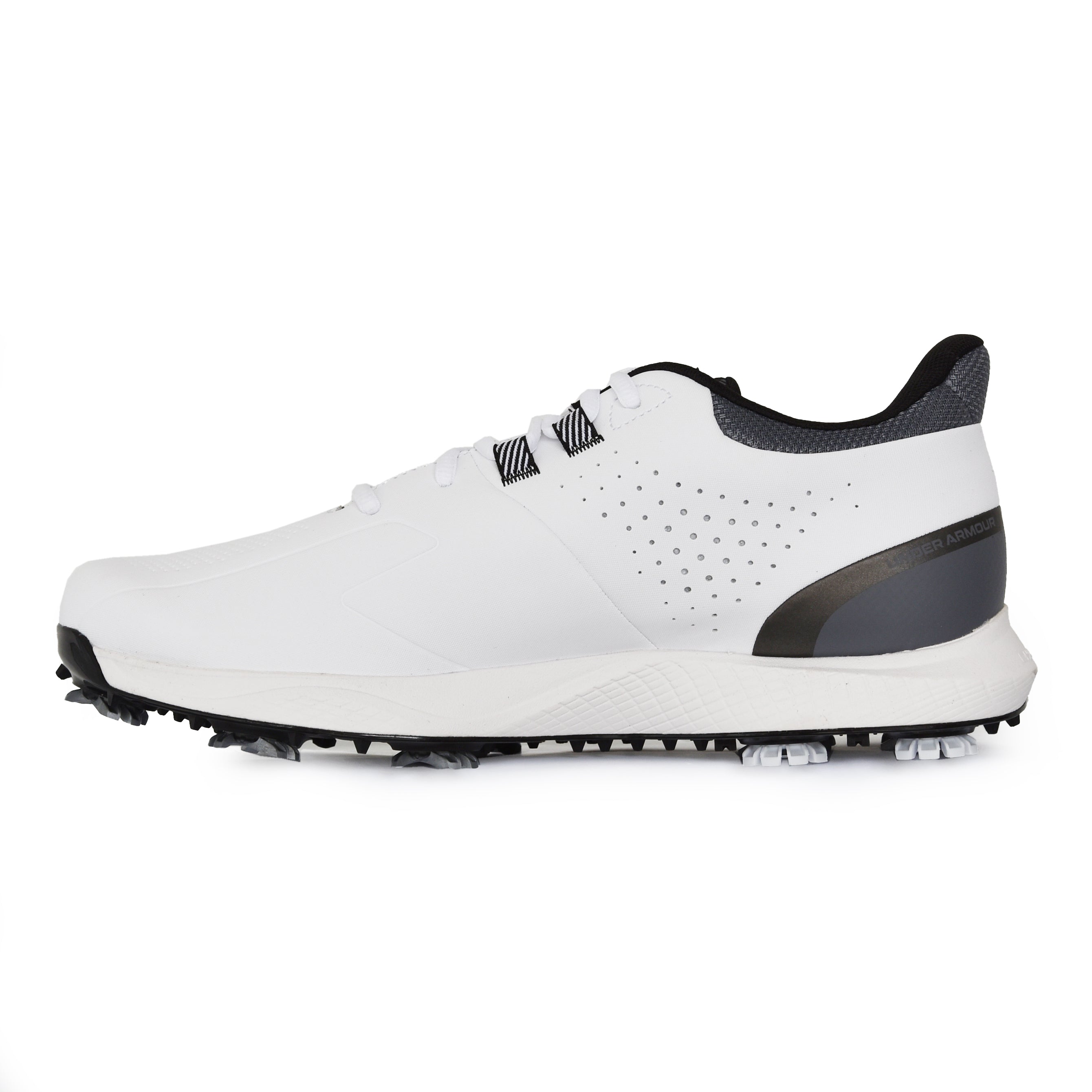 -UA Swing Support System (S3) bietet eine intelligentere Traktion, Doppelfoam-Polsterung und Lockdown-Schnürung -Wing-Stützriemen verbinden sich mit Verstärkung im oberen -Energie-Rückkehr UA HOVR ™ Schaum + unterstützende geladene Polsters leitet die natürliche Bewegung des Fußes in einem Golfschwung -Neue UA S3-Spikes-mit Softspikes® und einem Golfbiomechanisten geprägt-für bahnbrechende Richtungstraktion -Outsole verfügt -Updated Fit mit mehr Platz am Fußball für einen verbesserten Komfort und Stabilität -Bemme, unterstützende technische Mikrofaser -obere und vollständige wasserdichte Membran -Molded Sockliner für verbesserte Passform & Komfort