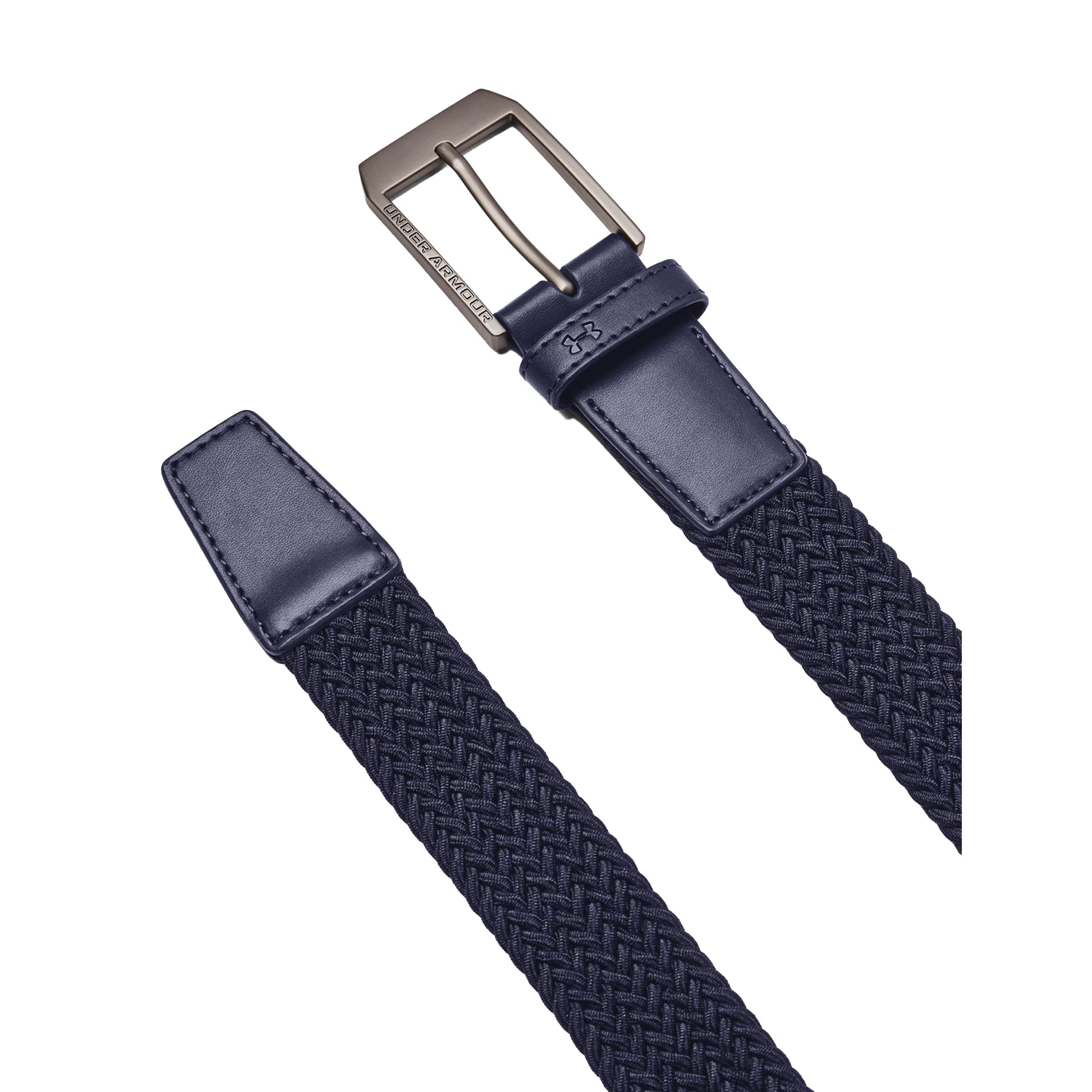 -Brütztes elastisches Material bietet zusätzliche Dehnung und Flexibilität -Metalschnalle mit debosserem UA Wordmark -Lederende Stücke