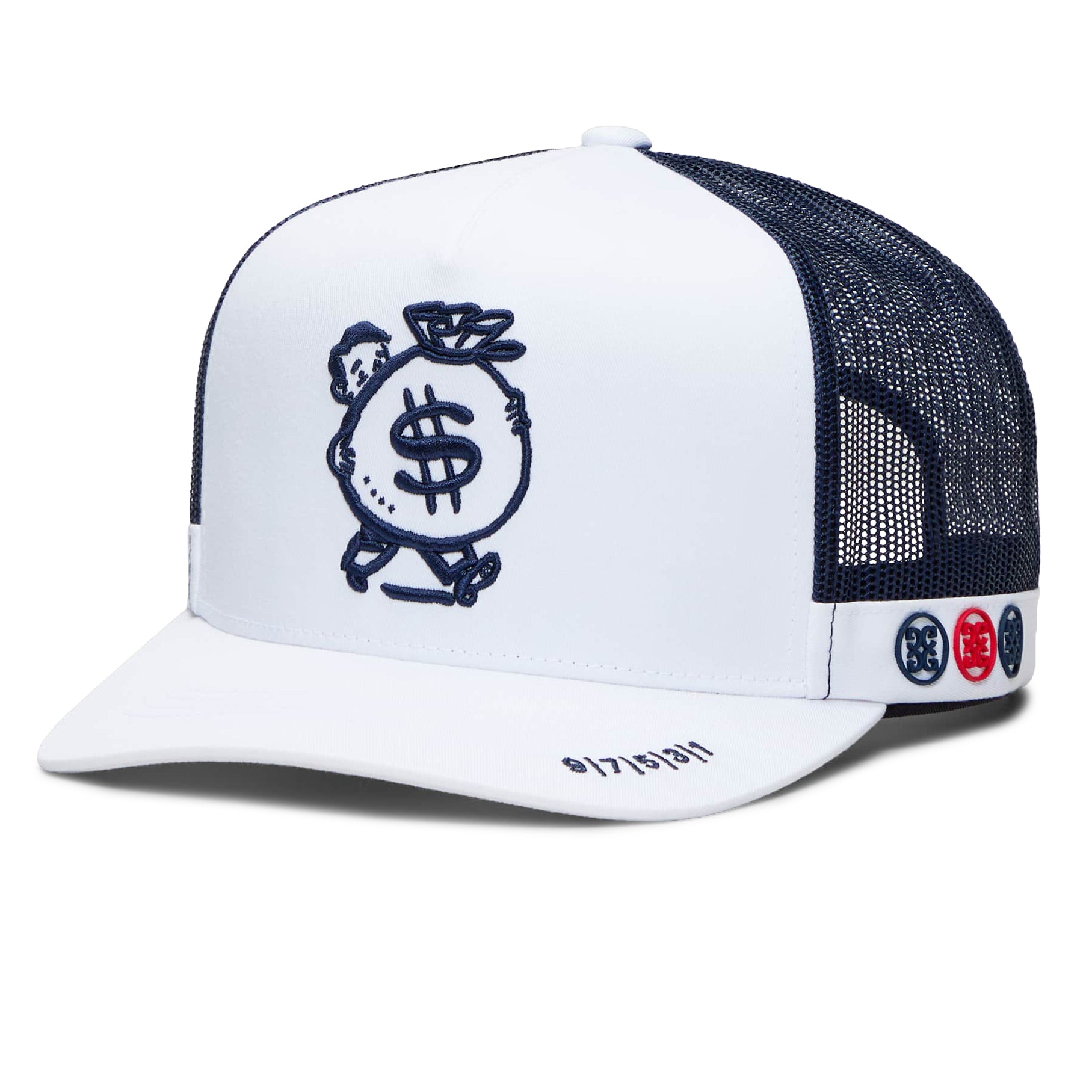 MGA DETALYE GINAWA NG KOMPORTABLE NA COTTON TWILL FABRIC BURAHAN NG 'MONEY MAN' SA FRONT & CIRCLE G'S LOGOS SA GILID 5-PANEL NA DESIGN NA MAY SOFT, CURVED BRIM BUILT-IN ATLETIC SWEATBAND & MESH BACK PANELS ANG MAAYOS NA PAGSASARA NG SNAPBACK AY TINISIGURADO ANG PERPEKTO