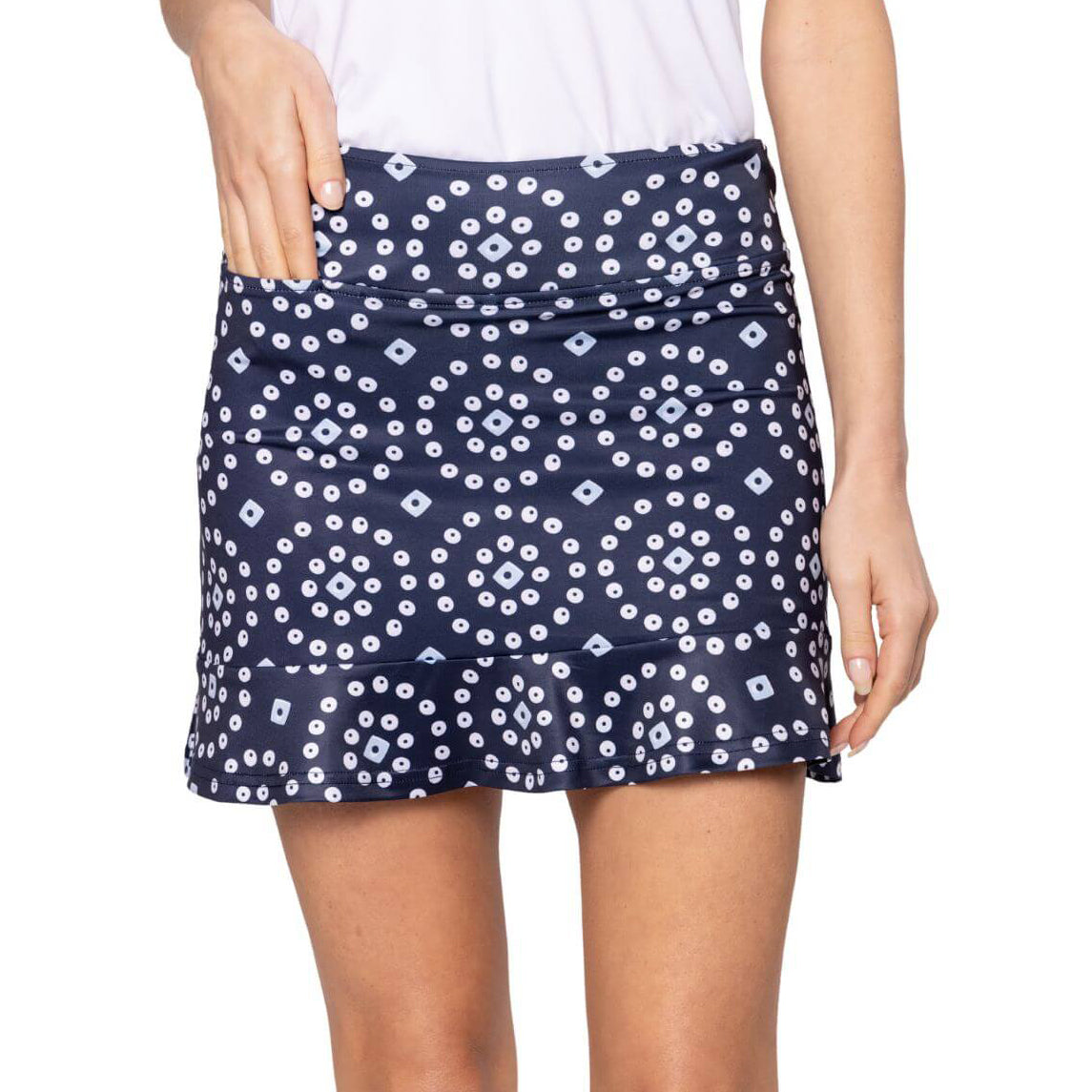 Ang Golftini Women's Hidden Treasure 17.5 "Ang Golf Skort ay ang perpektong timpla ng klasikong kagandahan at modernong pagganap. Nagtatampok ng isang walang katapusang base ng navy na pinalamutian ng isang malulutong na puting geometric na pag-print, ang skort na ito ay naghahatid ng isang makintab na hitsura na walang pagbabago mula sa kurso hanggang sa kaswal na paglabas. aliw, tinitiyak na manatiling cool at tiwala sa buong araw.