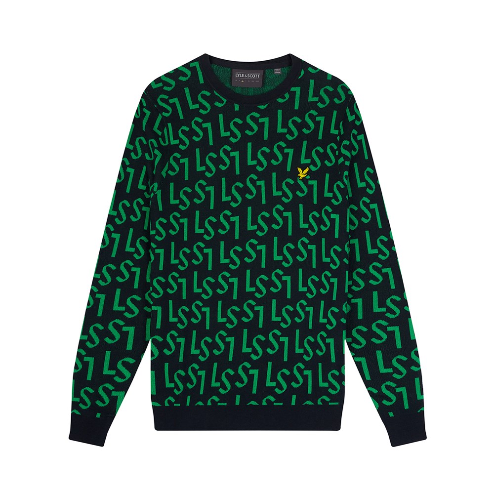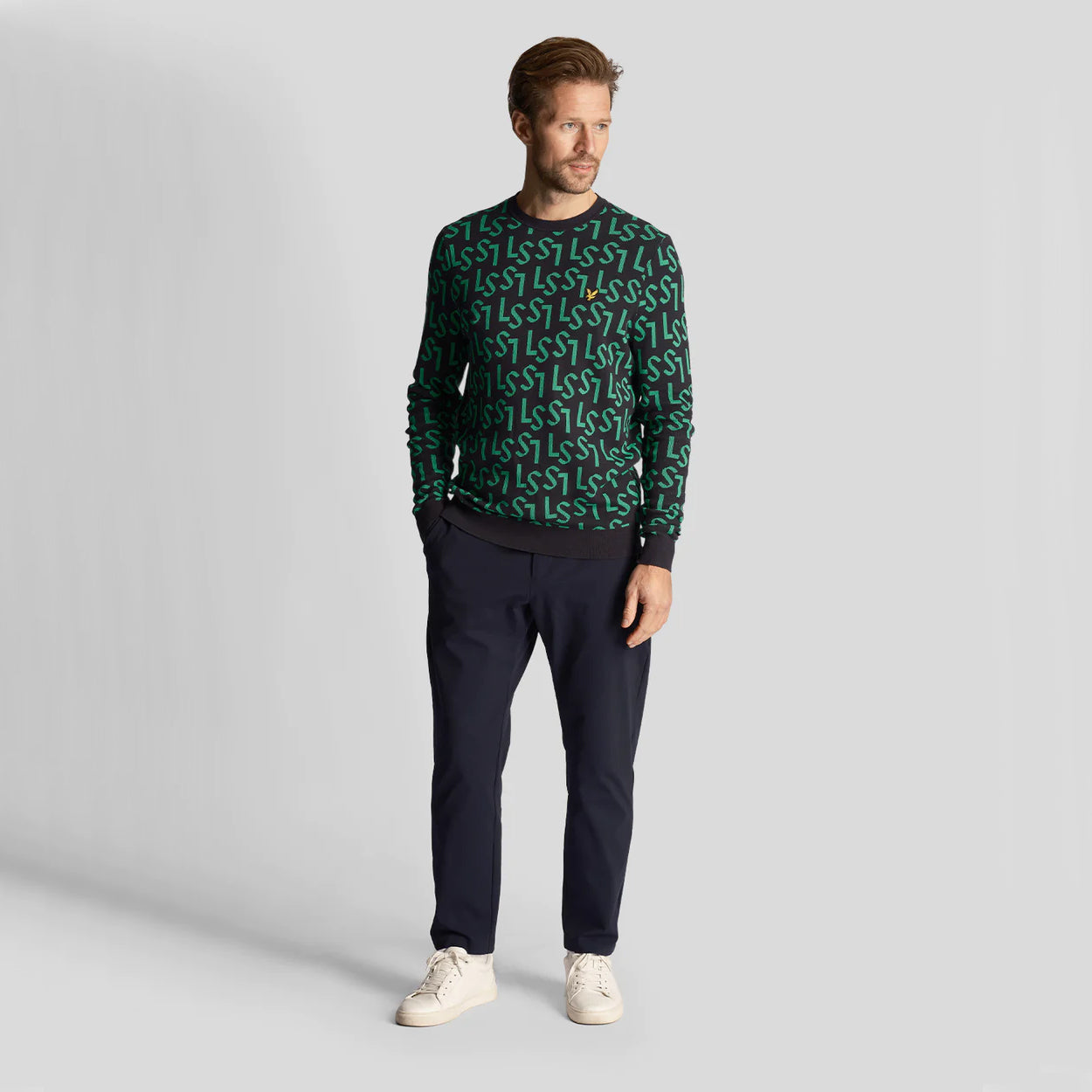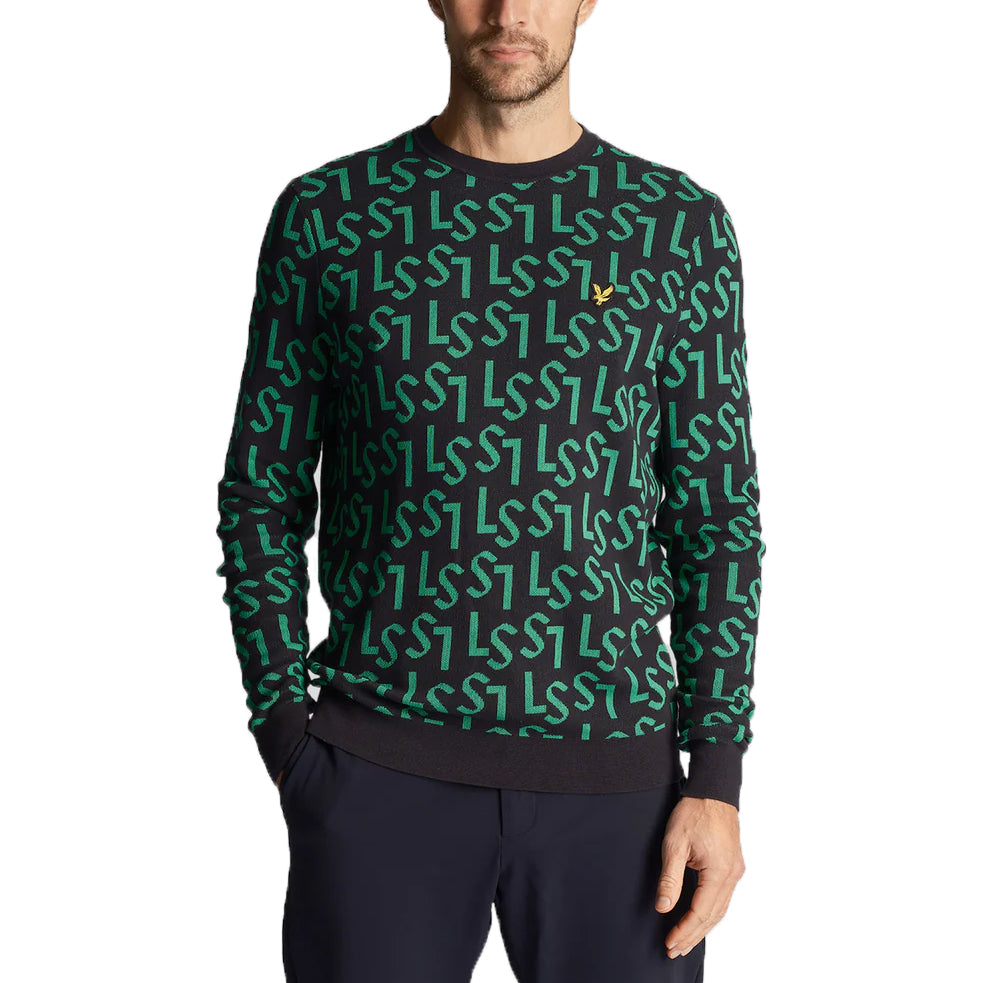 Lyle & Scott Monogram Knitted Golf Crew Neck - Madilim na Navy