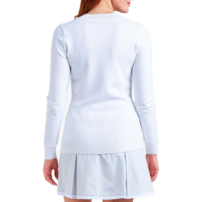 Kung ikaw ay tumatakbo sa isang cool na umaga o patungo sa brunch pagkatapos ng iyong pag-ikot, ang Nicole V-neck sweater ay nagdadala ng walang kahirap-hirap na pagganap at polish sa anumang aparador ng golf.
