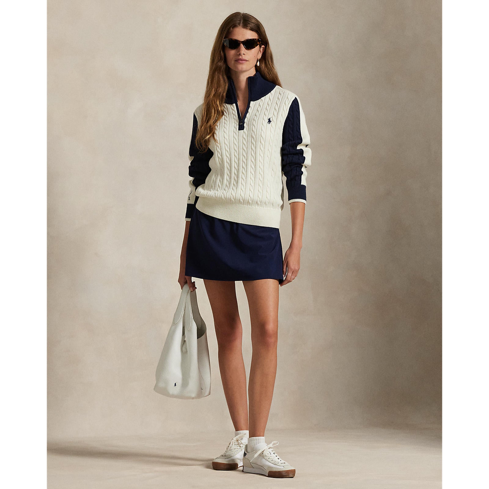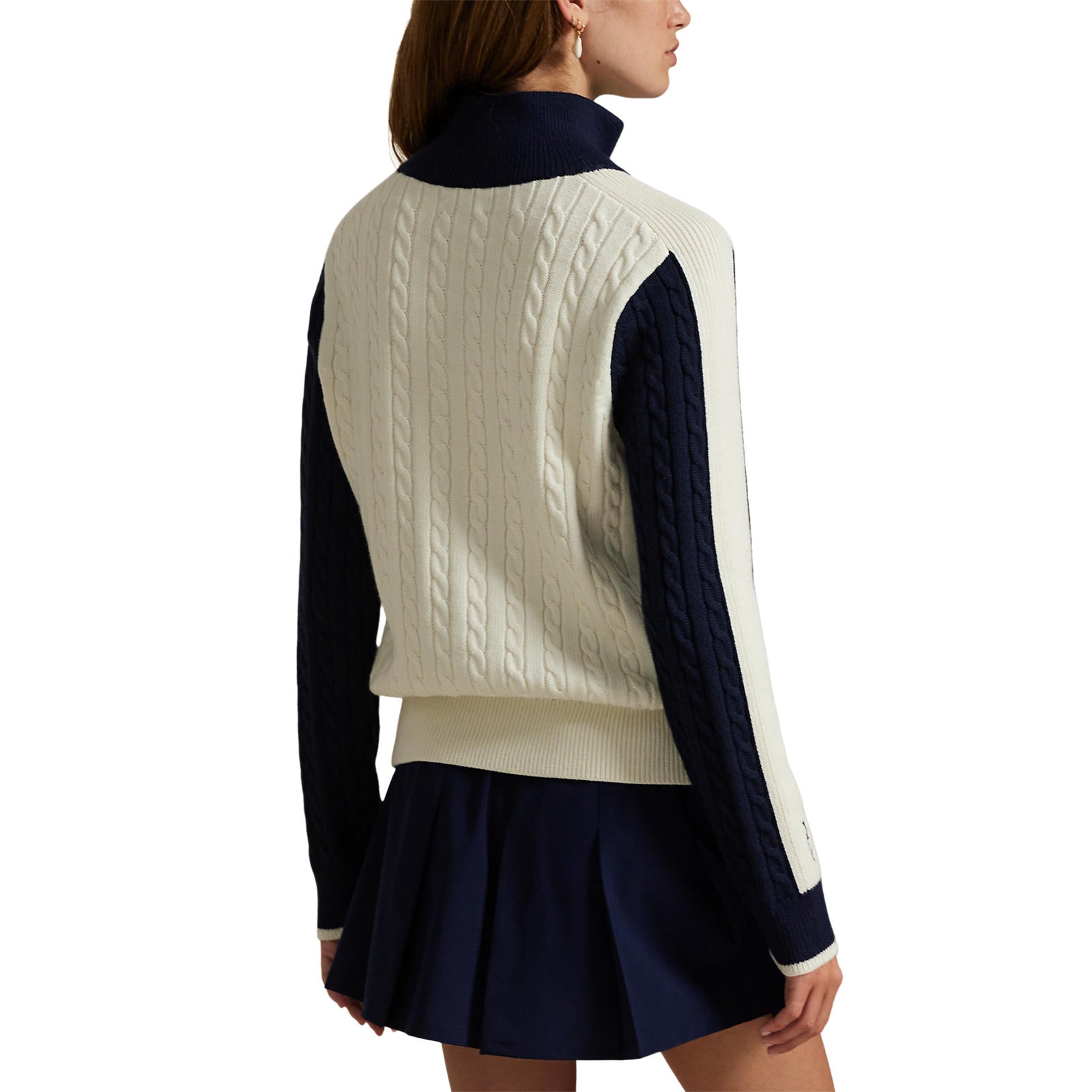 Rlx Ralph Lauren Femme pour femmes tricoter le quart zip Pullover - Navy blanc / raffiné antique