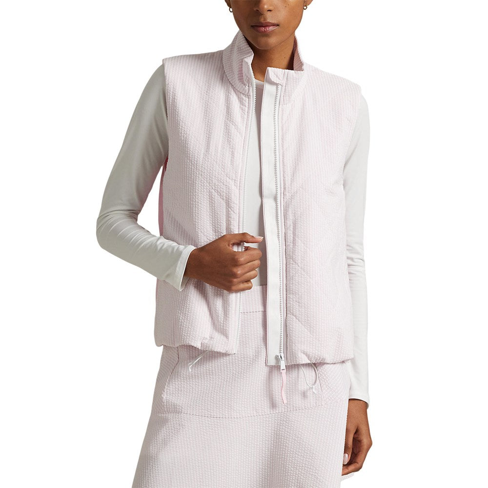 Léger. Sportif. Élevé. Le gilet hybride matelassé RLX Ralph Lauren en rose du jardin est votre superposition pour une superposition de transition avec un bord athlétique moderne. Fabriqué pour combiner la chaleur et la mobilité, ce gilet dispose d'un panneau avant de seersucker matelassé pour une texture subtile et une isolation légère, associée à un Terry français extensible à l'arrière pour un confort respirant et une sensation douce et flexible.