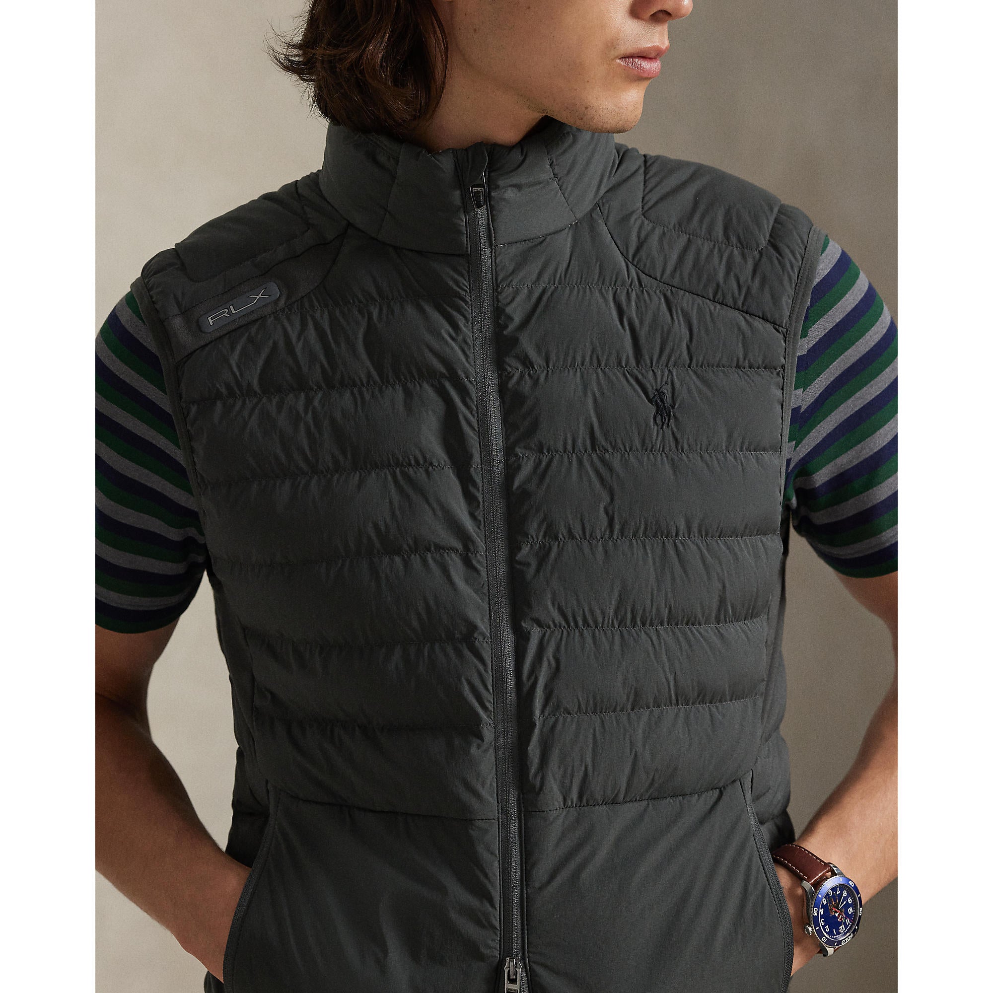 The RLX Ralph Lauren Men’s Ergonomic Down-Alternative Gilet combines technical performance with modern styling. Crafted from water-repellent fabric and ergonomically panelled with stretch jersey, this gilet provides warmth, mobility, and functional storage for on- and off-course wear.