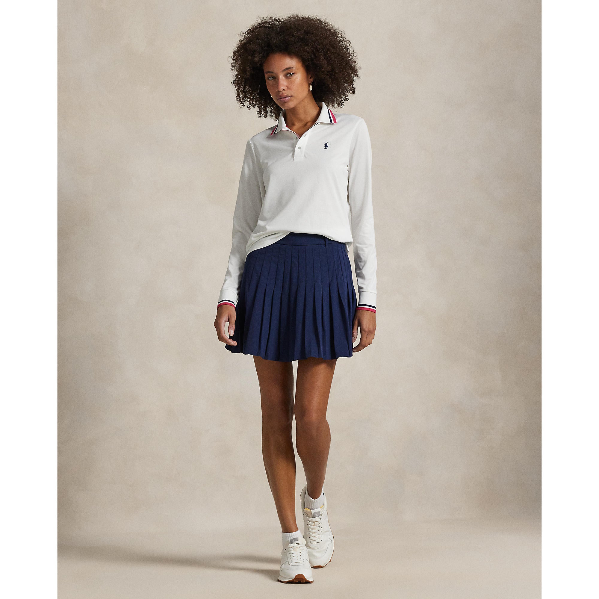 Rlx Ralph Lauren Women's Tour Pique Polo à manches longues - Ceramic Blanc / Currant