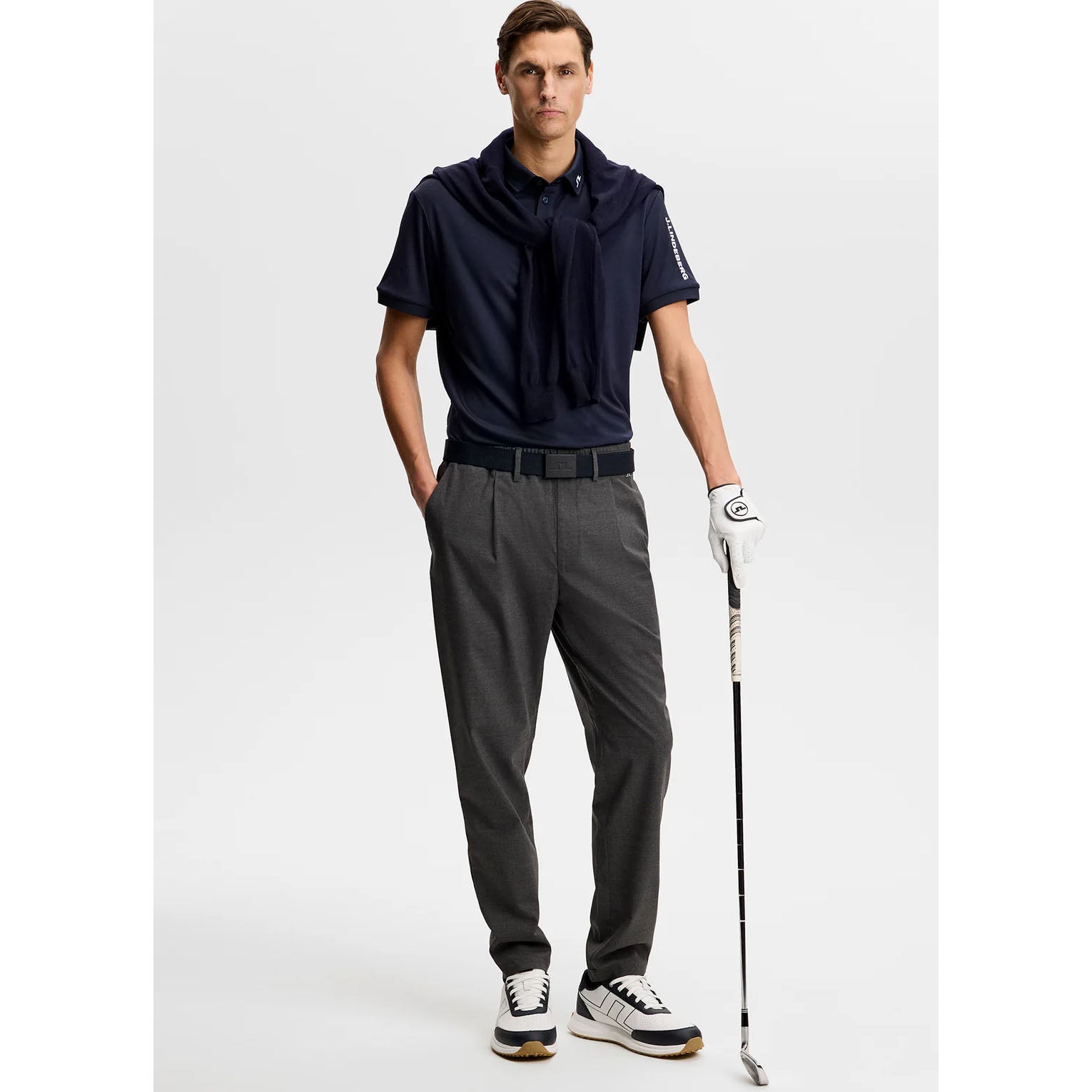Pencitraan Merek Khas: Menampilkan sulaman jembatan di bagian kerah dan punggung, dengan logo J.Lindeberg di bagian lengan untuk hasil akhir yang halus.