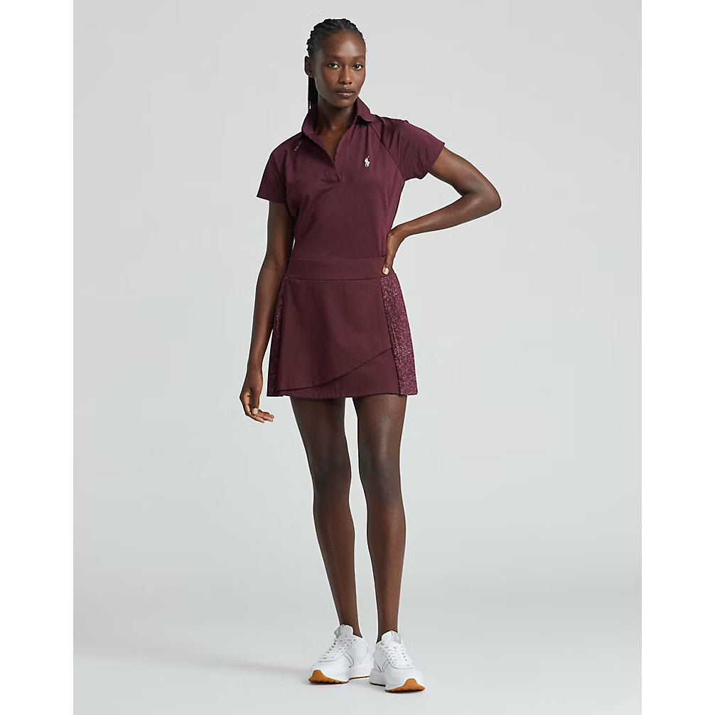 Siluet A-Line. Dimaksudkan untuk memukul di paha atas. Medium ukuran memiliki panjang rok 17 ". Panjang rok berubah 0,25" di antara ukuran. Pinggang elastis. Panel rajutan depan dan belakang yang solid. Panel samping tenunan berlipit dengan motif bunga. Interior terpasang pendek. "RLX" yang dicetak karet di atas ujung kanan. Shell: Nylon, Elastane. Panel samping dan interior pendek: poliester, elastane. Mesin yang bisa dicuci atau kering.