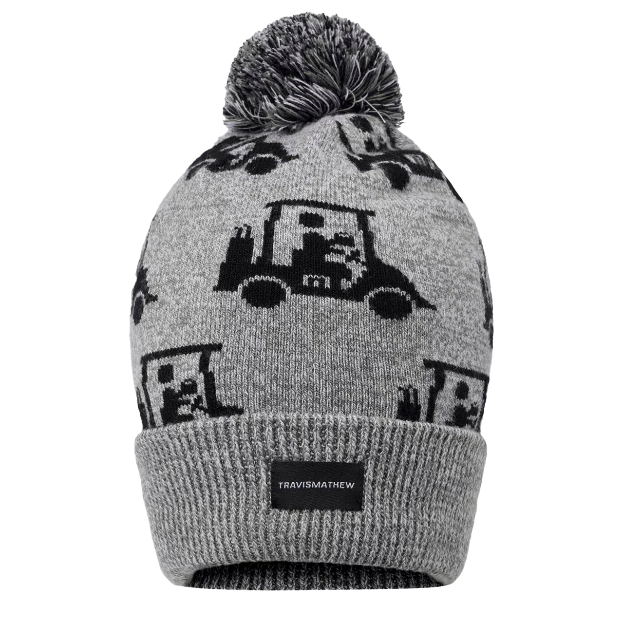 Cozy, Playful, and Unmistakably TravisMathew Stay warm and stylish with the MAPES Beanie. Crafted from soft woven fabric, it features an all-over print of our iconic golf cart graphic and a playful pom top, adding personality to every cold-weather look.