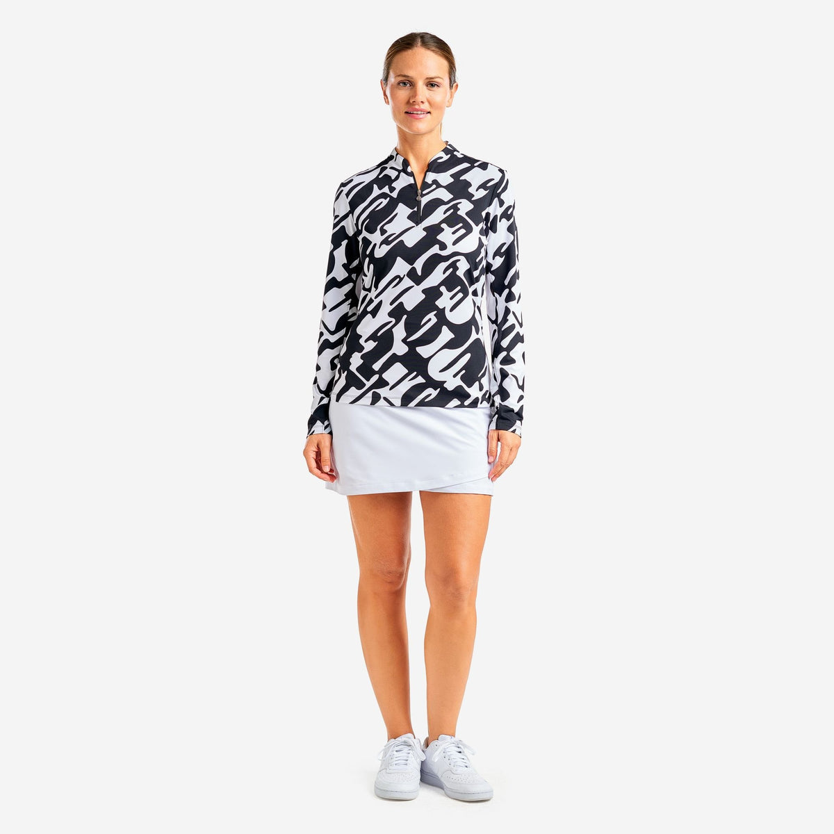 Nivo 여자 로리타 UV 긴 소매 모의 Mock Neck Golf Shirt -Black/White