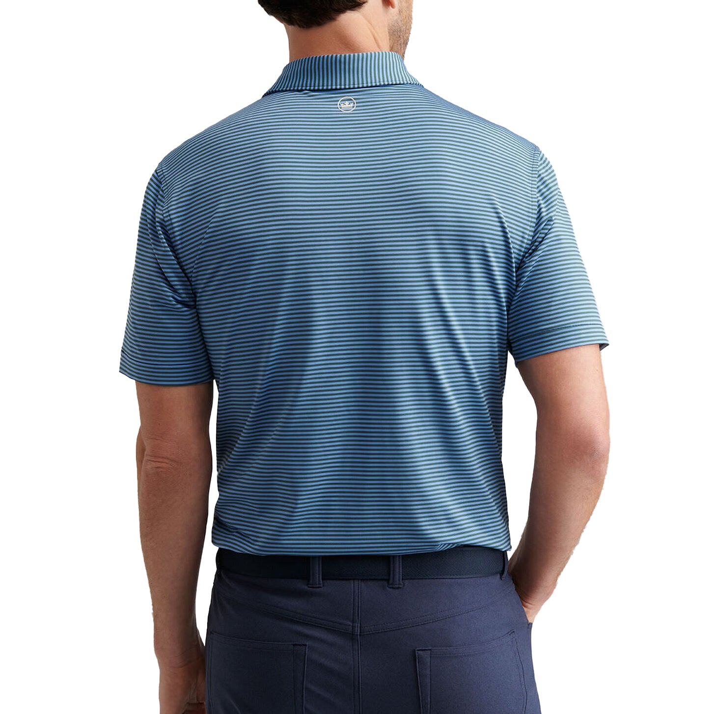 Peter Millar Hales 퍼포먼스 저지 골프 폴로 셔츠 - 네이비/코티지 블루