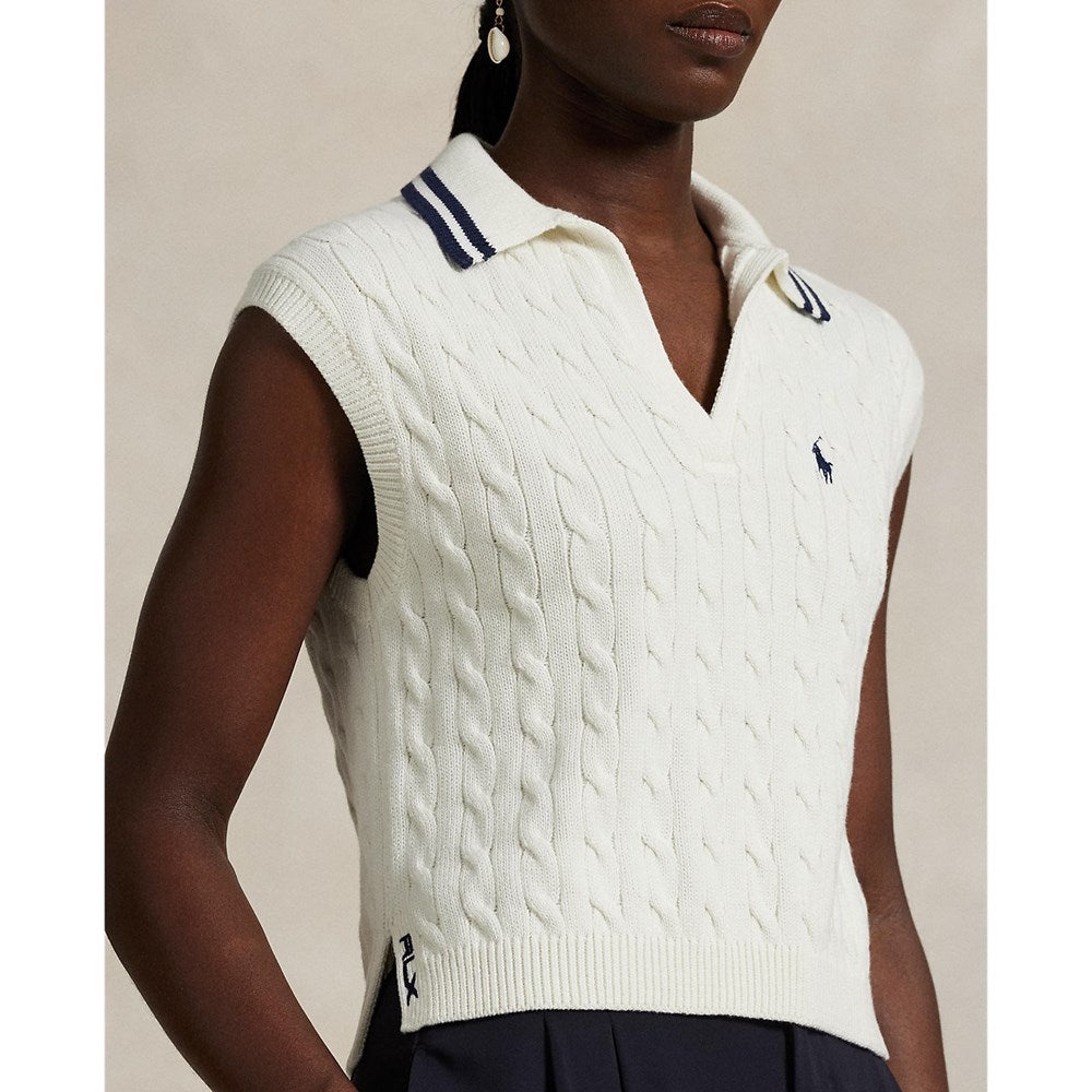 RLX Ralph Lauren Cable-Knit Sleeveless Polo와 함께 스포티 한 우아함을 경험하십시오. 시그니처 케이블 니트 구조 및 수분 윙 Coolmax® 섬유를 특징으로하는이 약간 자른 폴로는 세심한 자수 세부 사항을 보여 주면서 건조하고 편안하게 유지합니다.