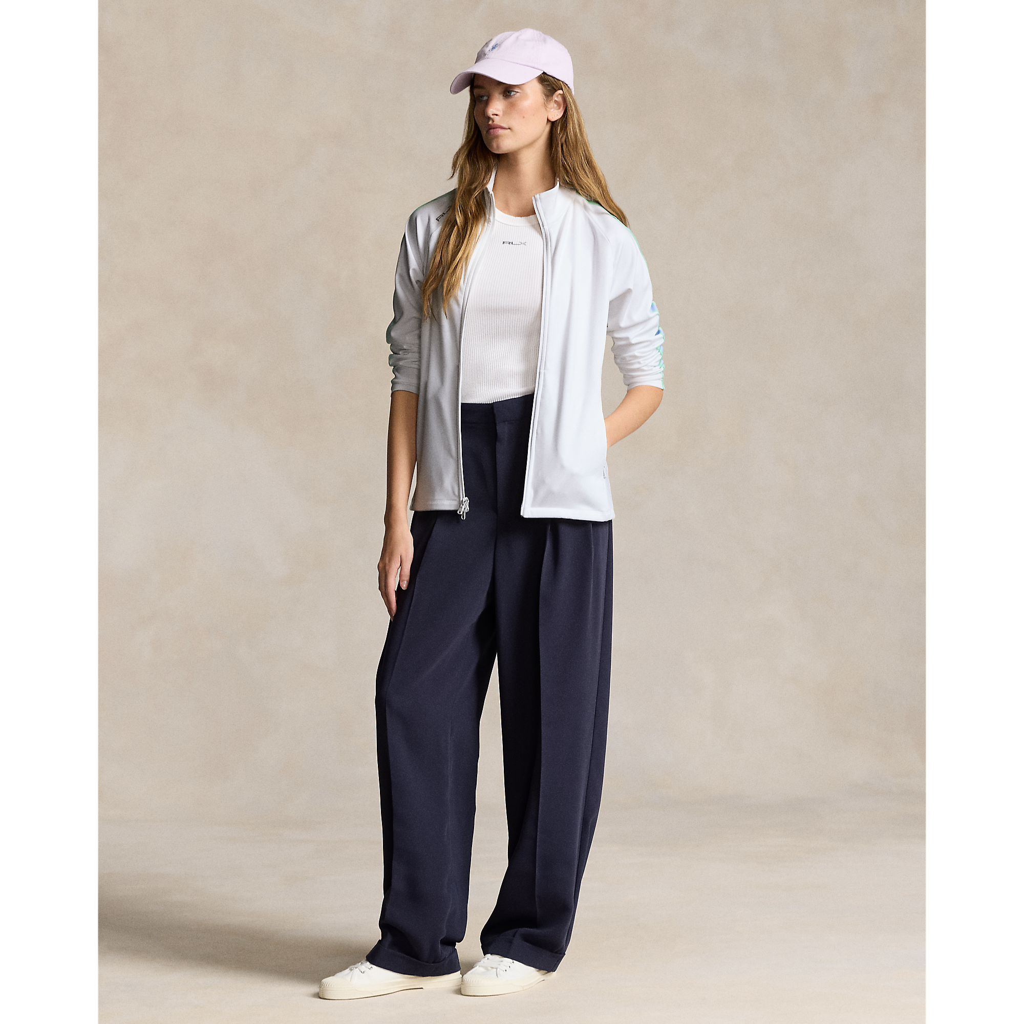 부드러운 복숭아로 렌더링 된 넓은 양의 스트레치로 렌더링 된이 Zip-Front 재킷은 대비 팔 스트라이프와 서명 "RLX"고무 인쇄 로고가있는 패널 구조를 특징으로합니다.