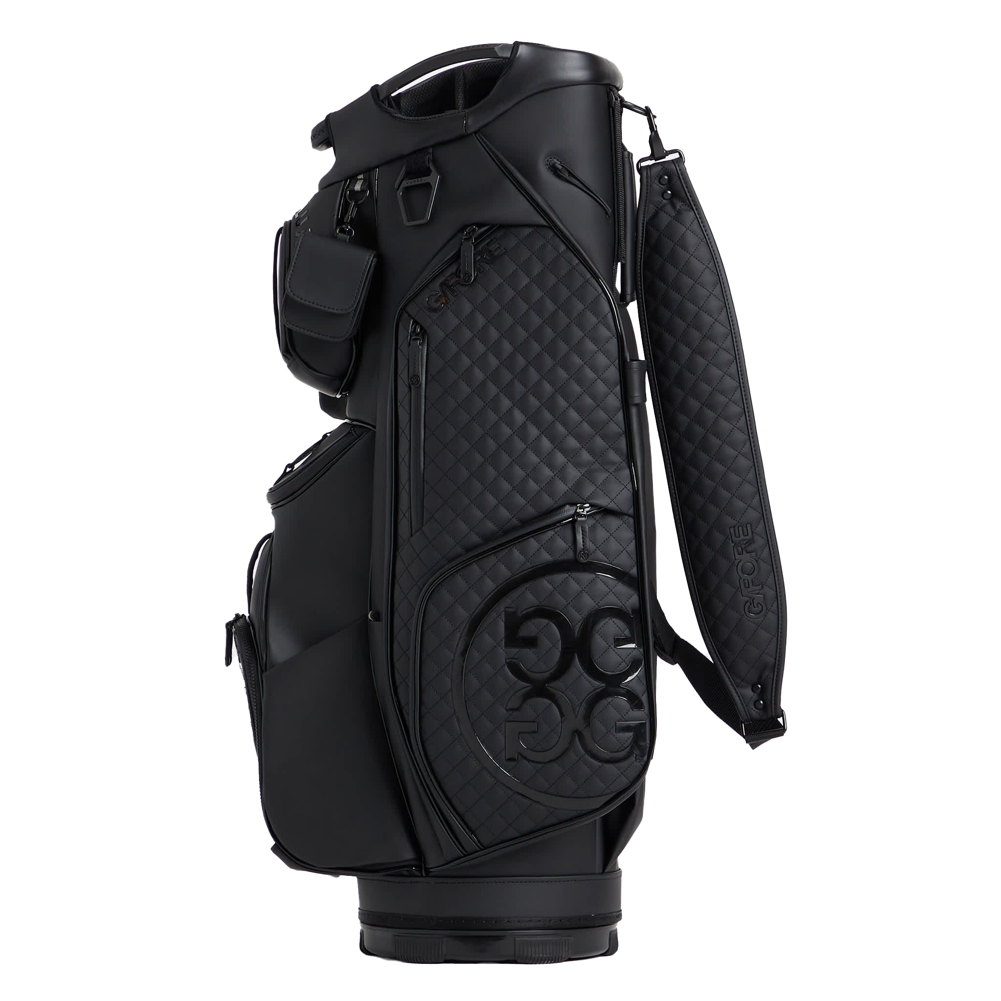 Dibuat dengan Lembutan Tinggi Lembut Rendah PU PU untuk Panjang Umur 17 poket termasuk poket pakaian panjang penuh, poket bola magnet, & kantung minuman berjajar Tali empuk laras untuk sesuai dengan sempurna Logo G/Fore & Circle G sepanjang Velor Berbaris Putter Baik & Pembahagi Panjang Penuh Zippers Kalis Air & Air Menolak Gusset Padankan tudung hujan termasuk 10.5 "x 8" pembukaan, 35.5 "h x 15.5" w x 10 "d