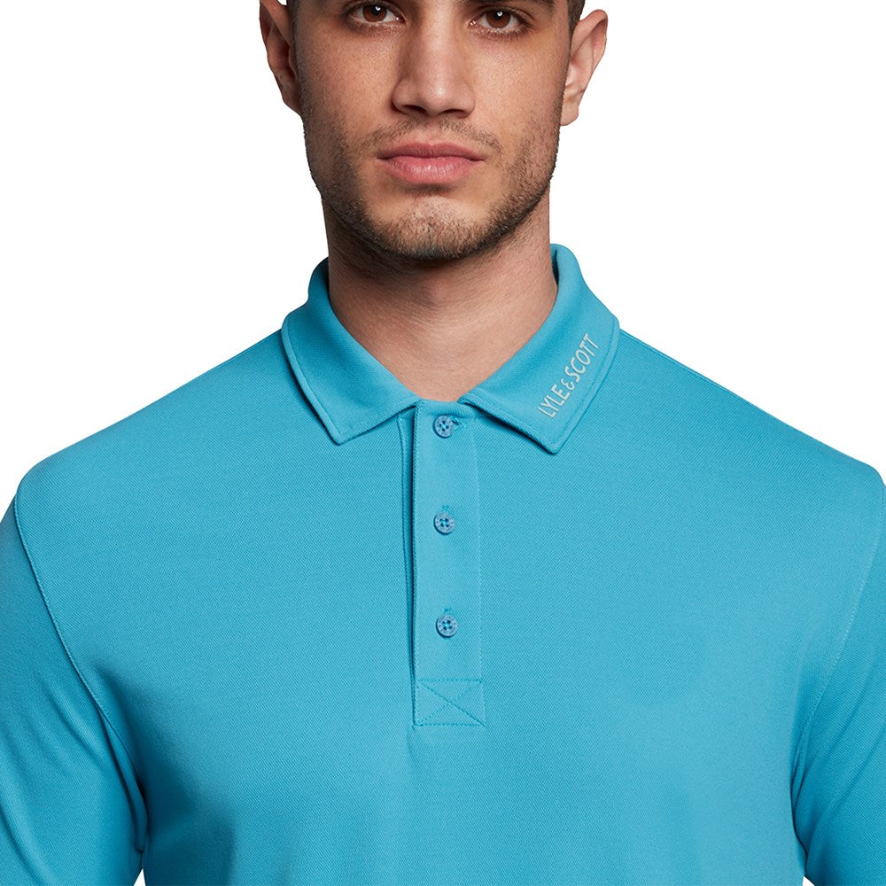 Lyle & Scott Tonal Eagle Tech Collar Logo Polo - Moonstone Blue