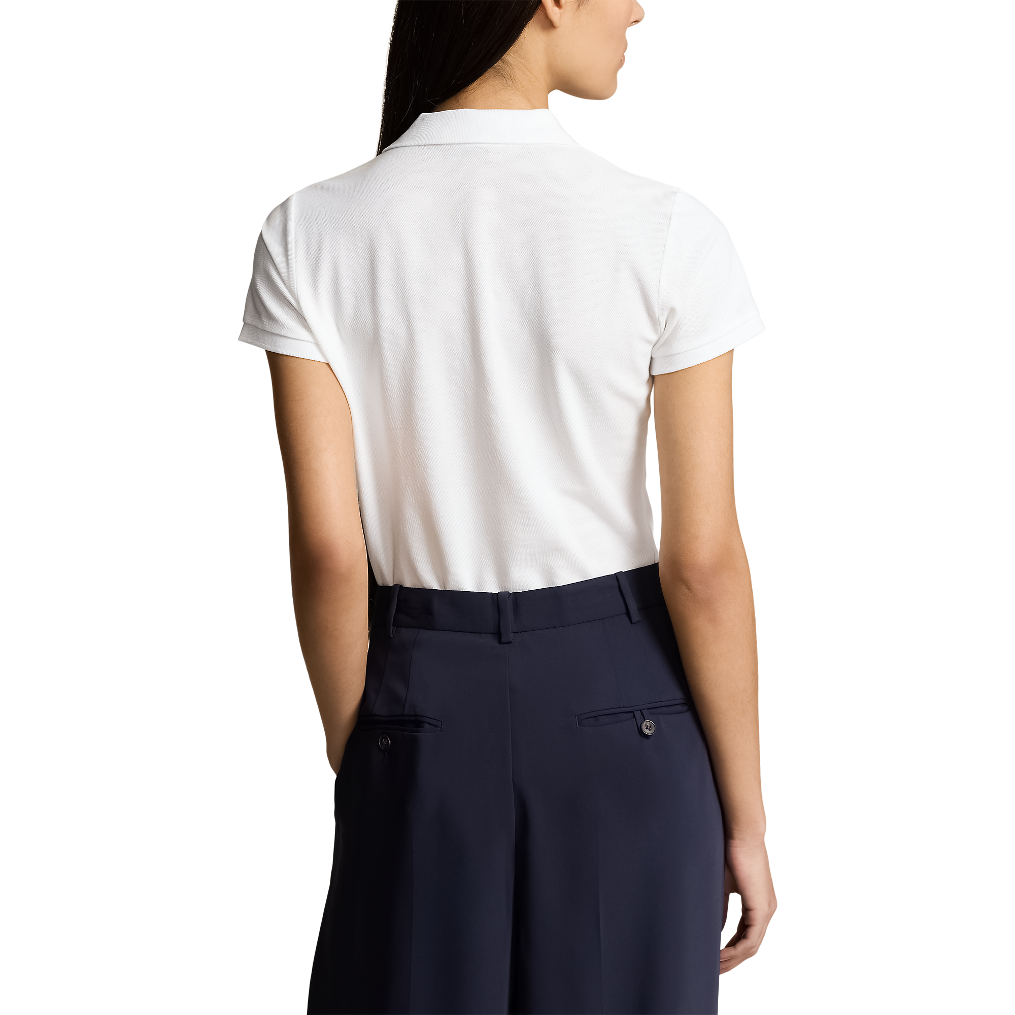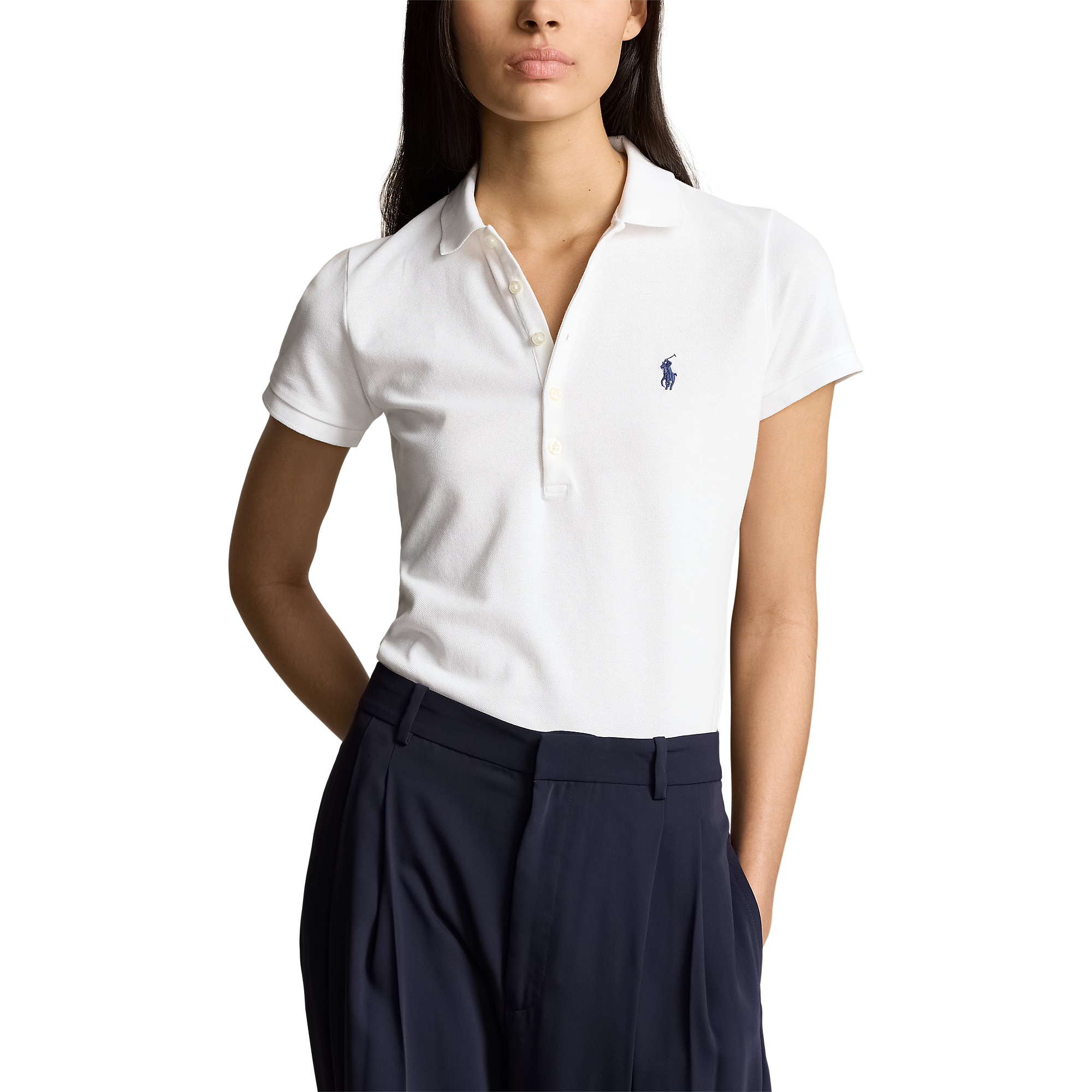 - kolar polo ribbed. - Placket lima butang. - Lengan pendek dengan armband ribbed. - Malah hem. - Tanda tangan bersulam kuda di dada kiri.