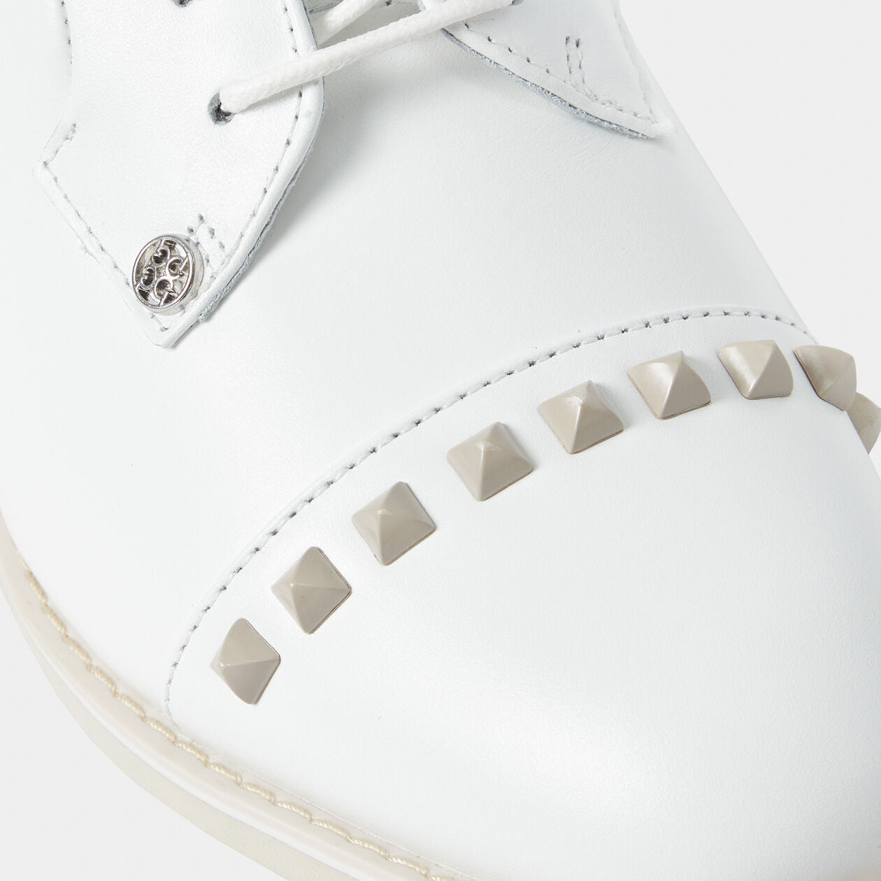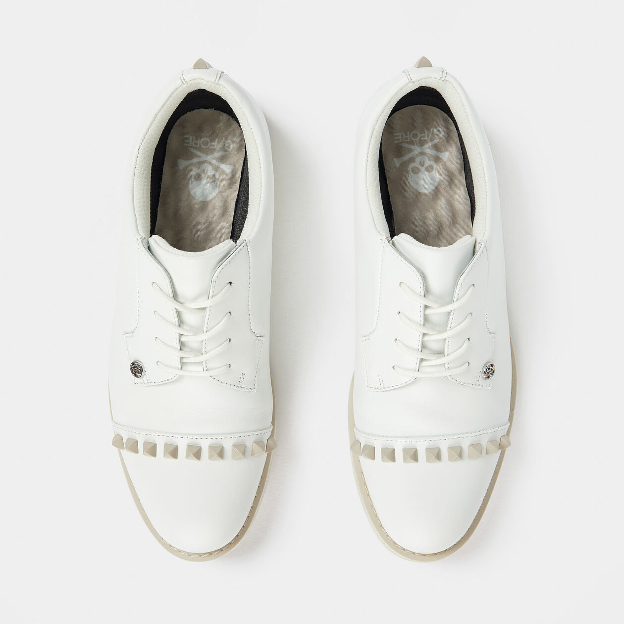 DETAILS Gemaakt met waterdicht glad leer Stijlvolle metalen dekdetails bij de teen & hiel Antimicrobiële drievoudige dichtheid schuimkussen voetbed met masserende nubs Volledig gevoerde mesh interieur voering voor ademend vermogen en comfort G/Round Control Technology Cleat Design Wordt geleverd met een extra set veters
