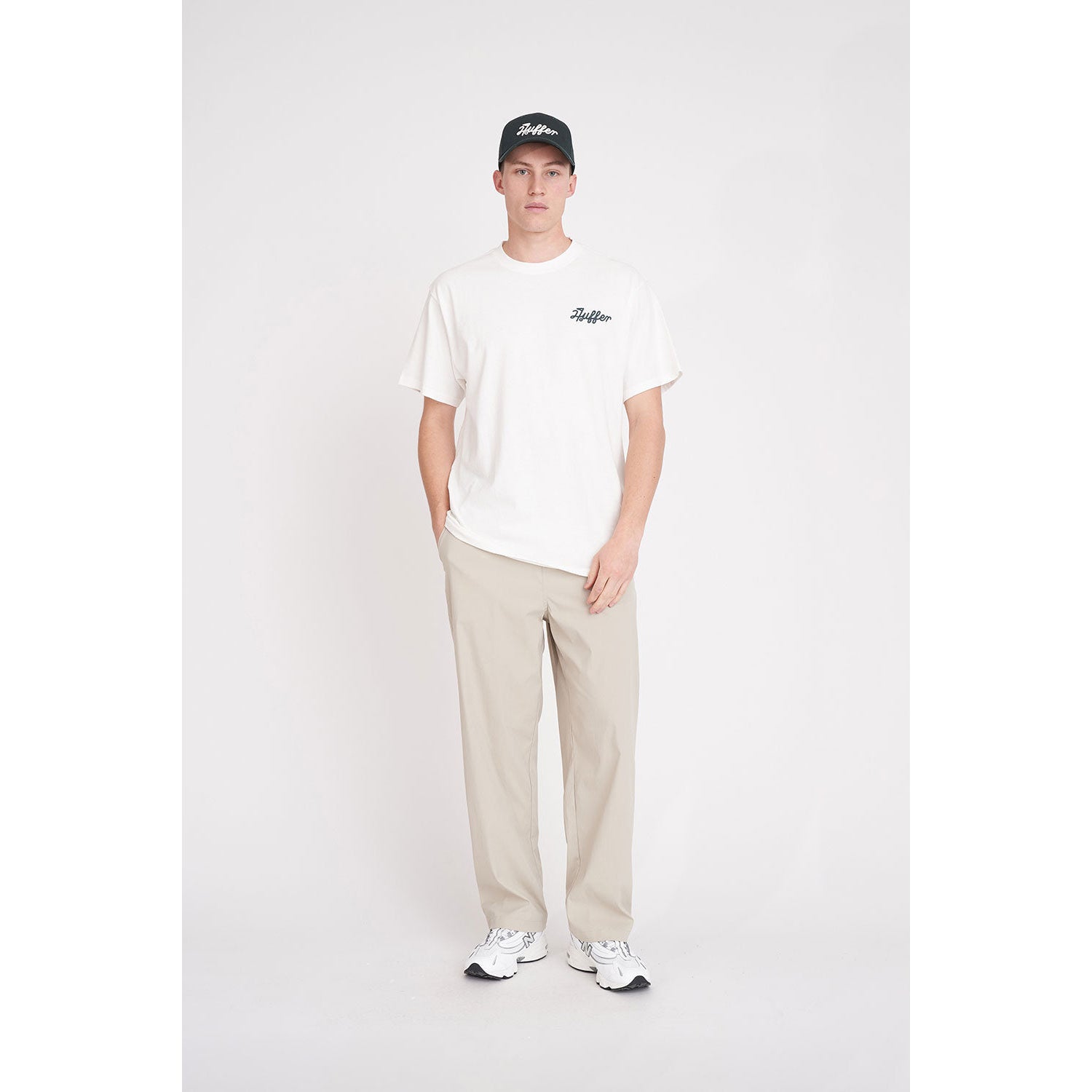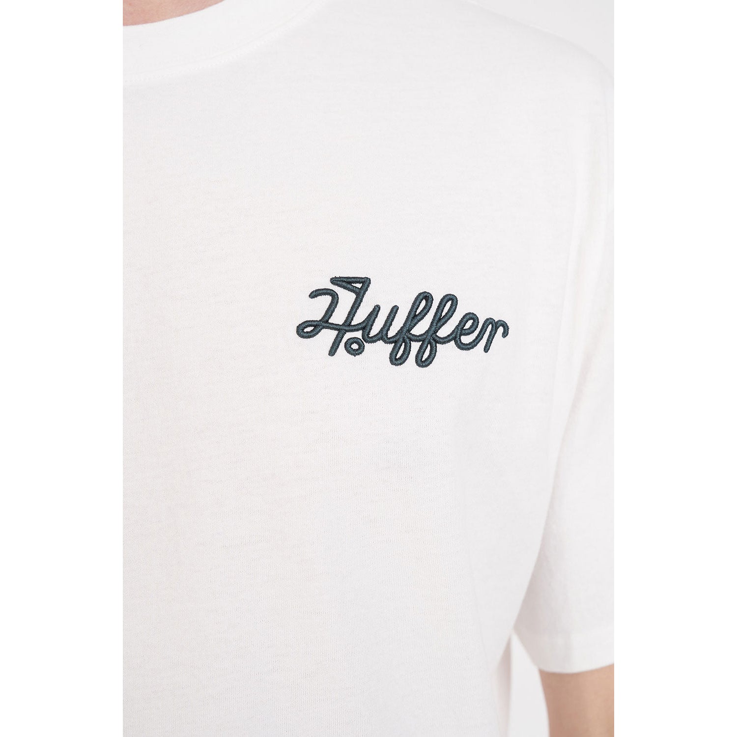 - Geborduurd embleem met het Huffer-merk op de linkerborst