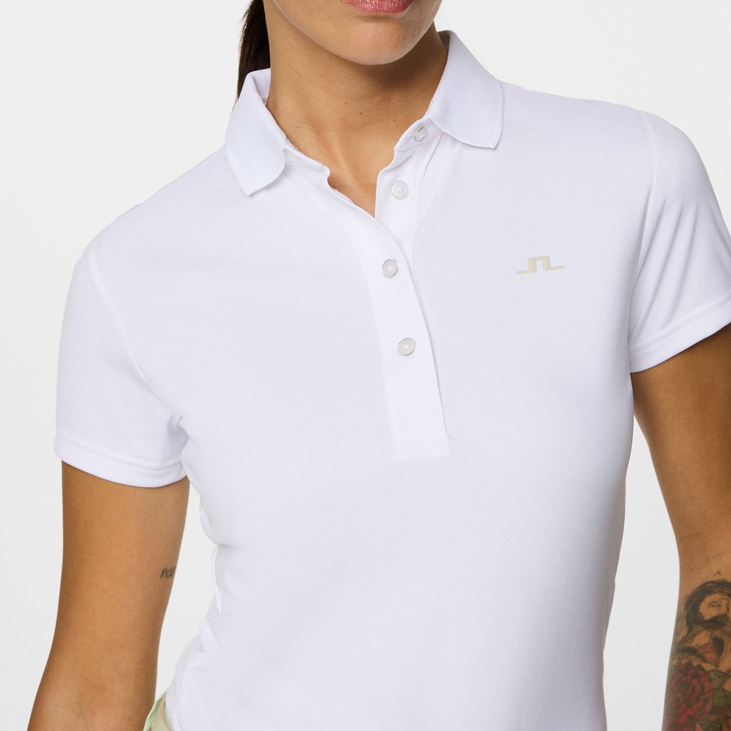 De Cassie Polo van J.Lindeberg Women levert scherpe prestaties in elke steek, ontworpen om moeiteloos met u mee te gaan. Gemaakt van ademende, vochtafwaltende stof met technische 4-weg stretch, zorgt het voor comfort en mobiliteit zonder stijl op te offeren. Met een klassieke 4-knopje placket, een geribbelde kraag en kenmerkende bruglogo's op de borst en rug, is deze polo een gepolijst essentieel voor de cursus of een andere actieve dag.