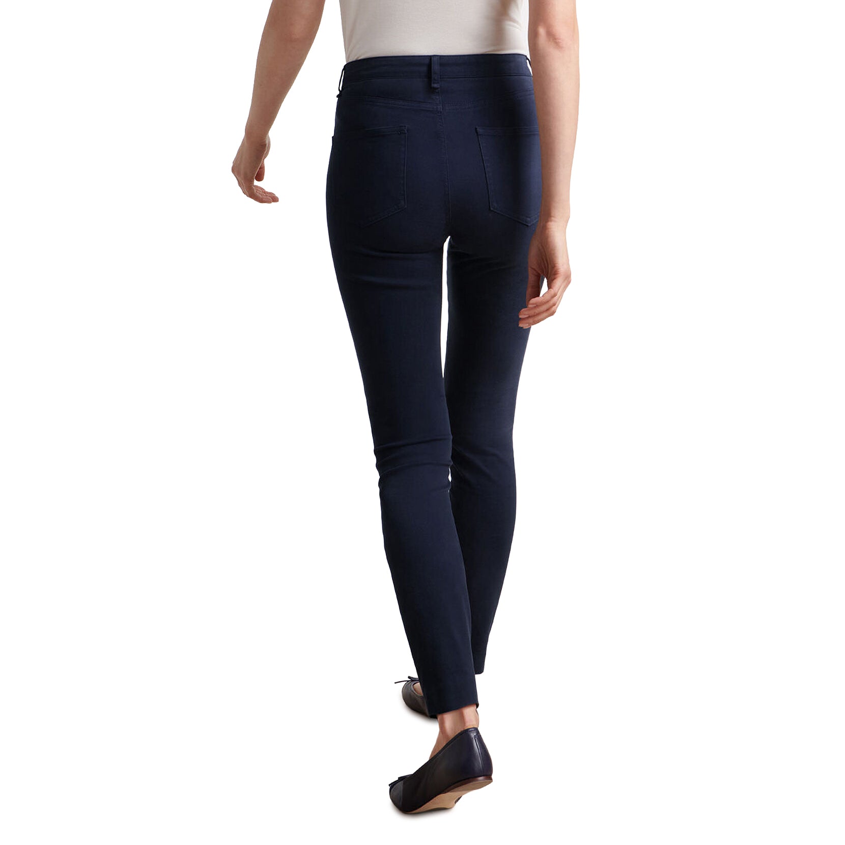 De Karlie Pant met hoge taille heeft een taillehoogte van 25 cm die comfortabel aansluit op de natuurlijke taille. Deze broek is gemaakt van zacht, glad katoensatijn en is voorzien van stretch voor bewegingsvrijheid en comfort onderweg. Afgewerkt met zijzakken en een ingekerfde enkelzoom.