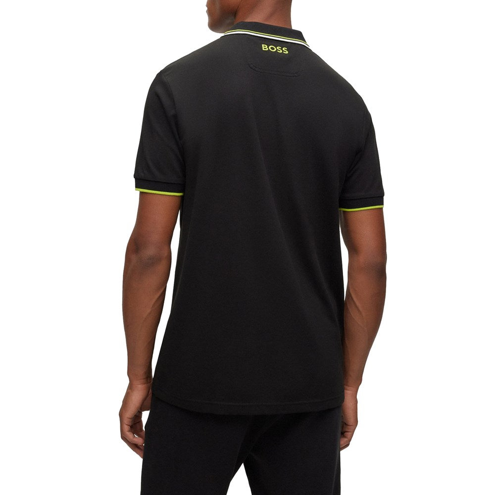 A premium golf polo shirt by BOSS Menswear. Detailed with contrast branding at the back neck and left chest, this short-sleeved polo shirt is cut to a regular fit in cotton-blend piqu? with stretch for active movement. The collar and cuffs are trimmed with 3D stripes to deliver an athletic finish.