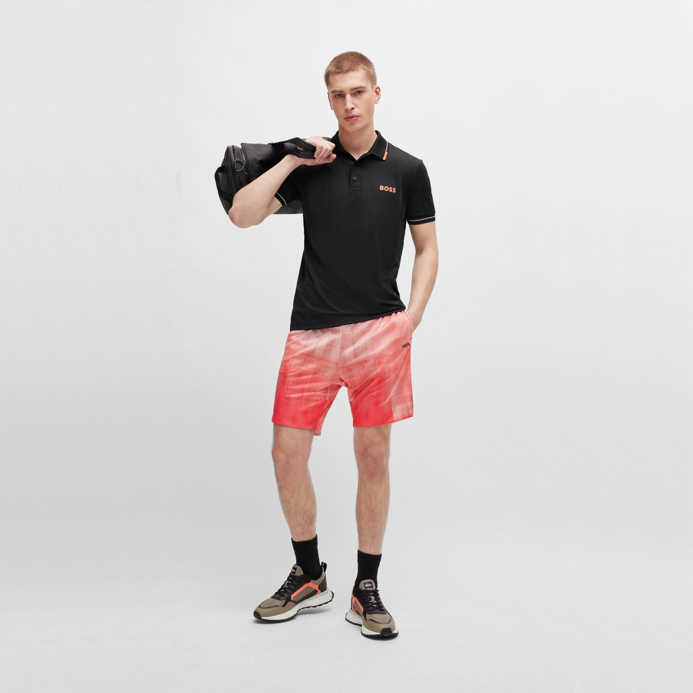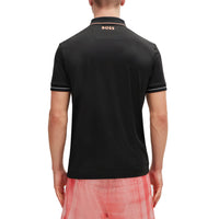 A sporty polo shirt cut to a defined fit in moisture-managing stretch material with contrast tipping and logo details by BOSS Menswear.