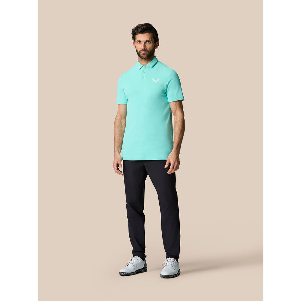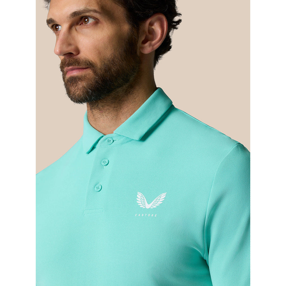 -High-Stretch, Lightweight Fabric: Offers maximum flexibility and breathability, allowing for unrestricted movement during every swing. -Aertek Technology: Enhances sweat-wicking to keep you dry and comfortable, even on the hottest days. -Drop-Back Hem with Hem Seam Opening: Provides additional coverage and ensures you stay comfortable during dynamic movements. -Self-Fabric Pointed Collar with Stand: A modern and stylish design that adds a clean, sharp look to your golf outfit. -Set-In Short Sleeves: Offers a comfortable fit and a stylish finish, perfect for warmer weather. -Side Splits: Enhance range of motion, allowing for full flexibility during your swing. -Aertek Tertiary Branding at Lower Left Back: Subtle branding that highlights the quality and performance of the top. -Castore Branding at Left Chest and Upper Back: Premium branding that reflects the top’s high-performance and stylish design.