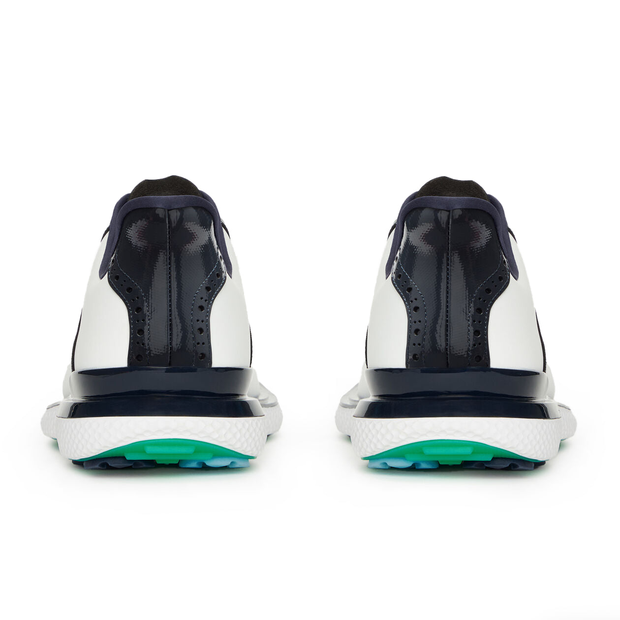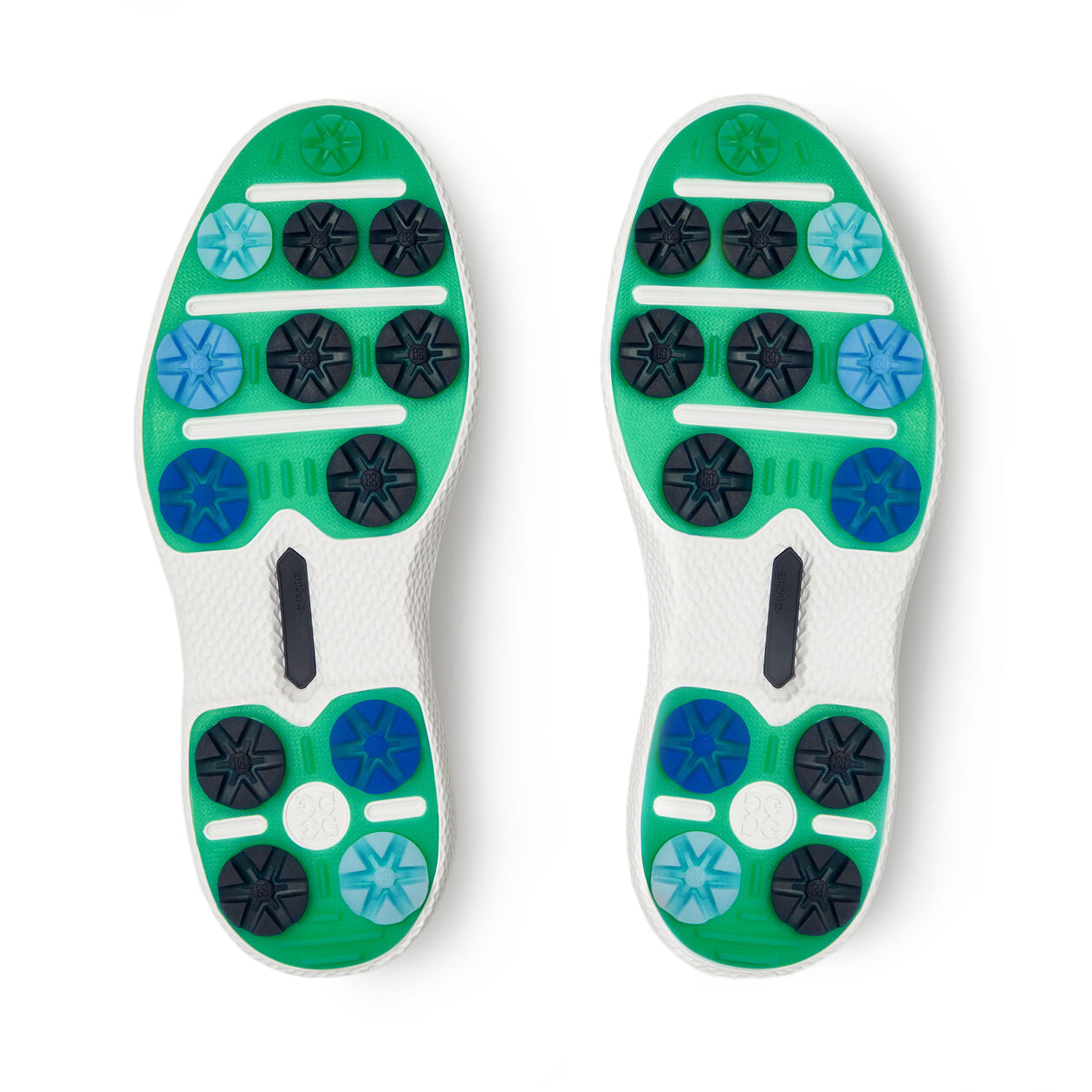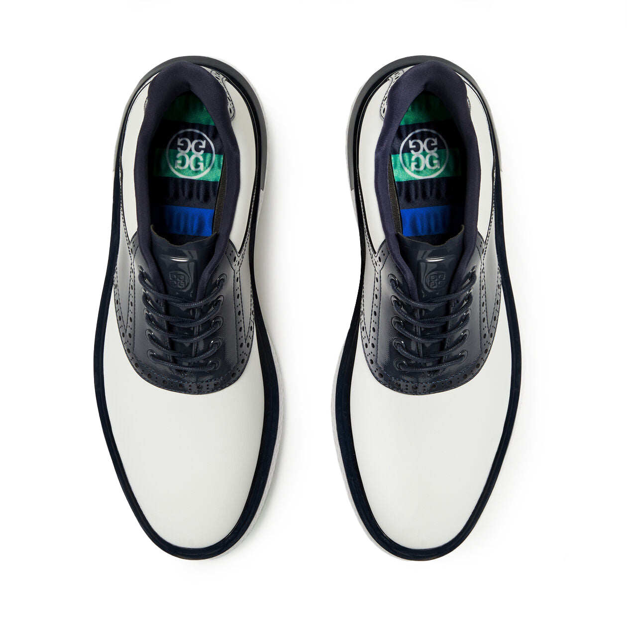 A COMBINATION OF THE MG4+'S MODERN PERFORMANCE DETAILS WITH THE GALLIVANTER'S CLASSIC SILHOUETTE. EQUIPPED WITH AN AUXETIC LATTICE MIDSOLE, INTEGRATED RUBBER CLEAT SYSTEM, HEEL CAP, CUSHIONED INTERIOR, AND ANTIMICROBIAL MESH LINING, ITS ULTRA LIGHTWEIGHT AND COMFORTABLE DESIGN COMES WITH FULLY LOCKED-IN STABILITY FOR EVERY SWING. THE WATERPROOF T.P.U. UPPER WON'T LET THE WEATHER STOP YOU EITHER.