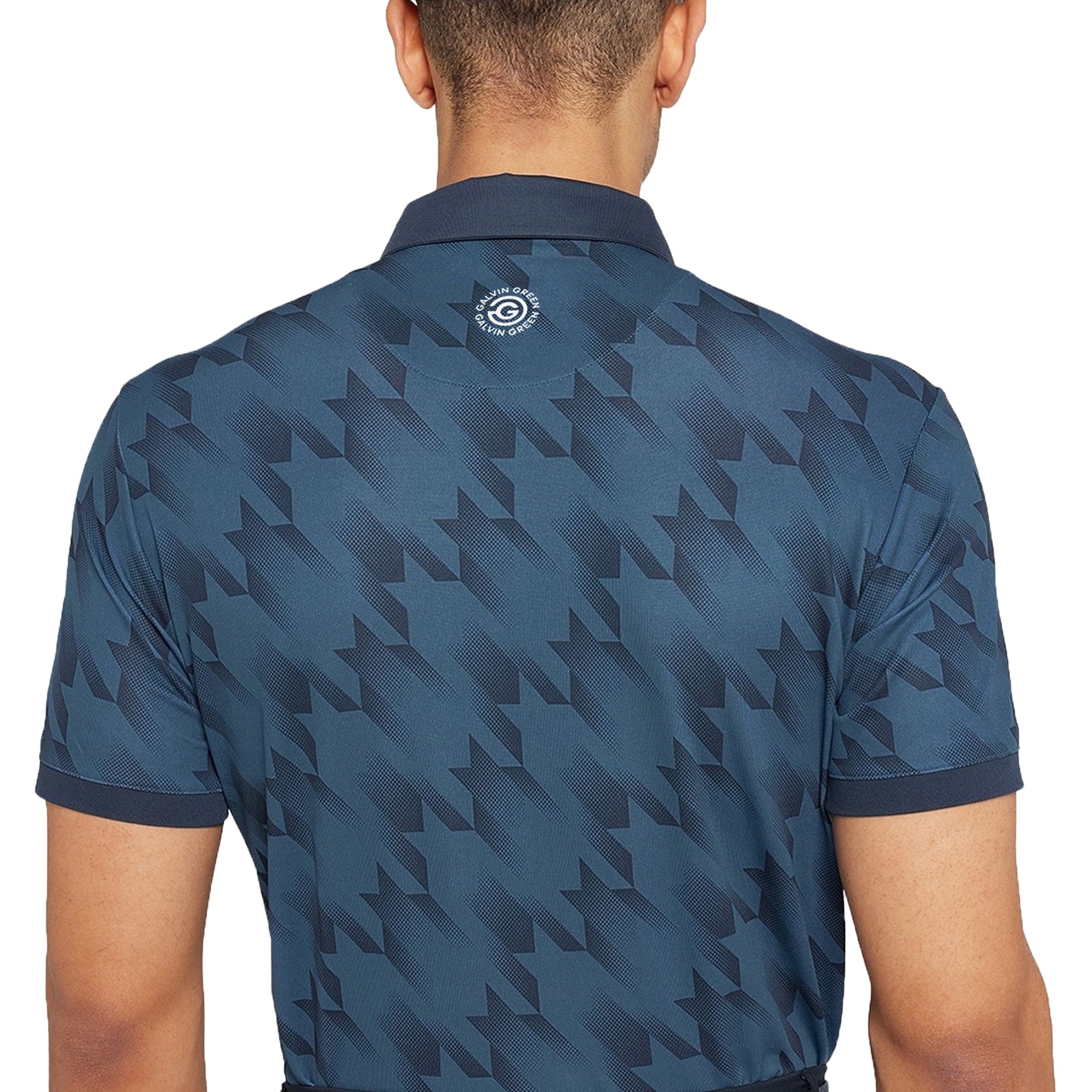 Designed for golfers who want to stand out, the Galvin Green Miles Golf Polo makes a bold statement with its oversized graphic houndstooth print. Crafted from VENTIL8™ PLUS fabric, it offers extreme breathability, rapid quick-dry performance, and UV 20+ protection to keep you cool, dry, and comfortable in sunny conditions. The stretch material ensures unrestricted movement, while the tailored collar and sleeve end cuffs deliver a refined, athletic look.