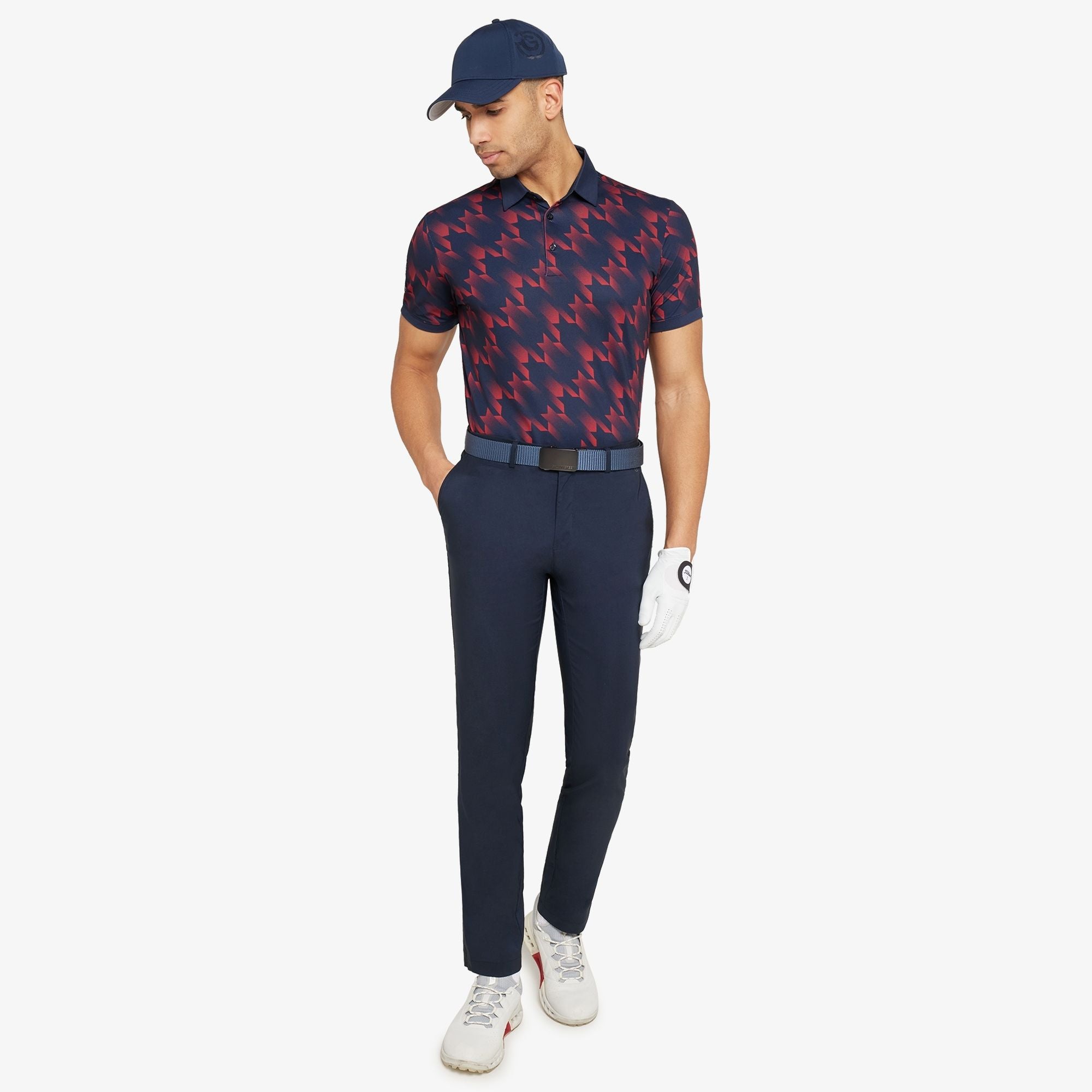 Bold Design: Oversized graphic houndstooth print creates a standout look on the course.