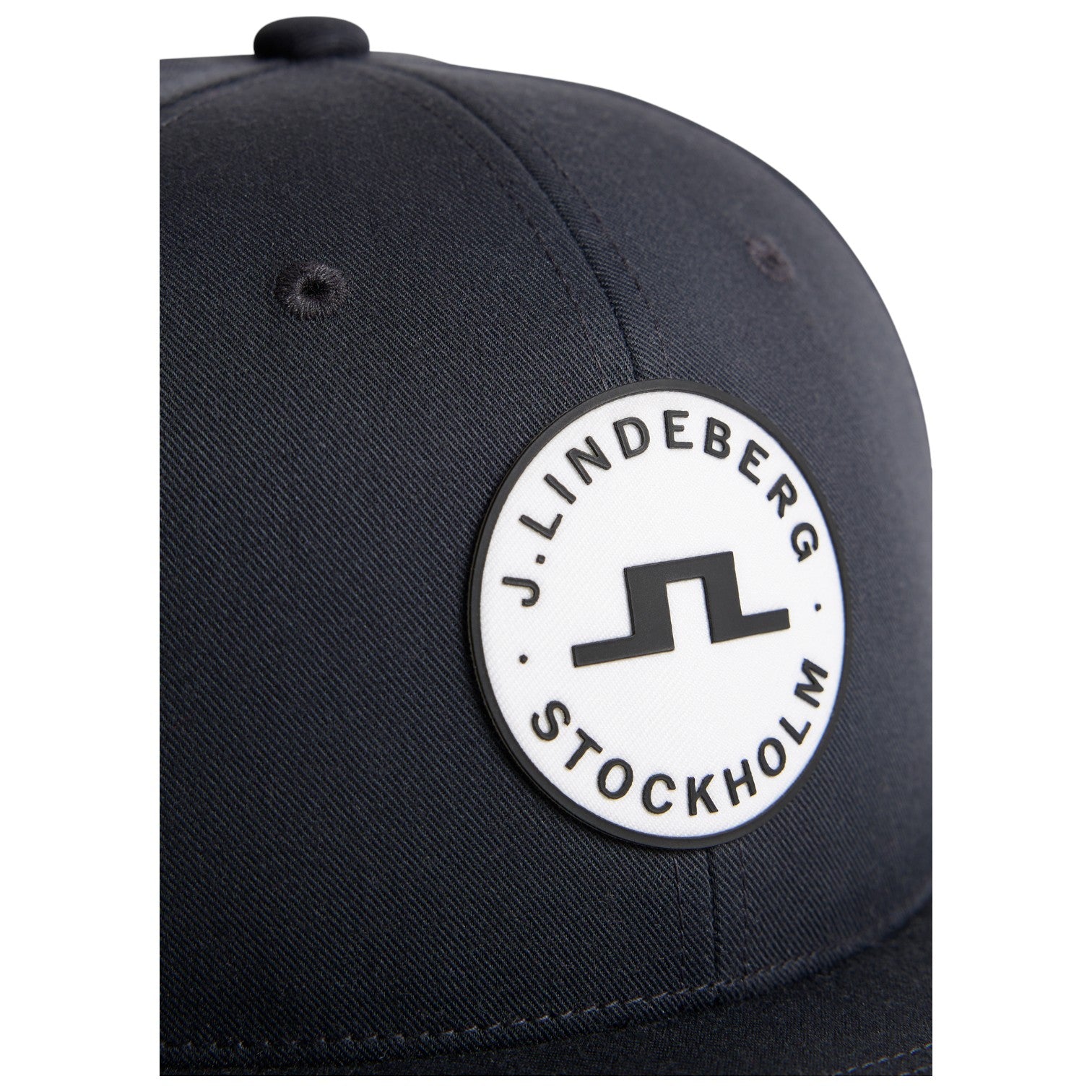 • Signature Front Branding: Bridge logo and J.LINDEBERG text logo with Stockholm patch at the center front.