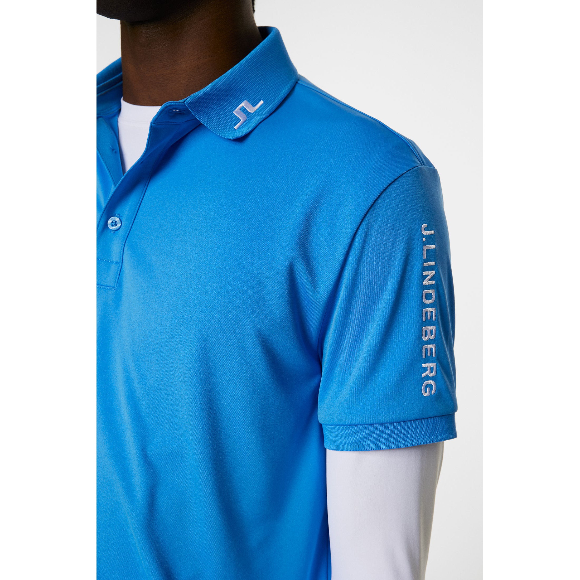 Signature Branding: Features Bridge embroidery at the collar and back, with a J.Lindeberg logo at the sleeve for a polished finish.