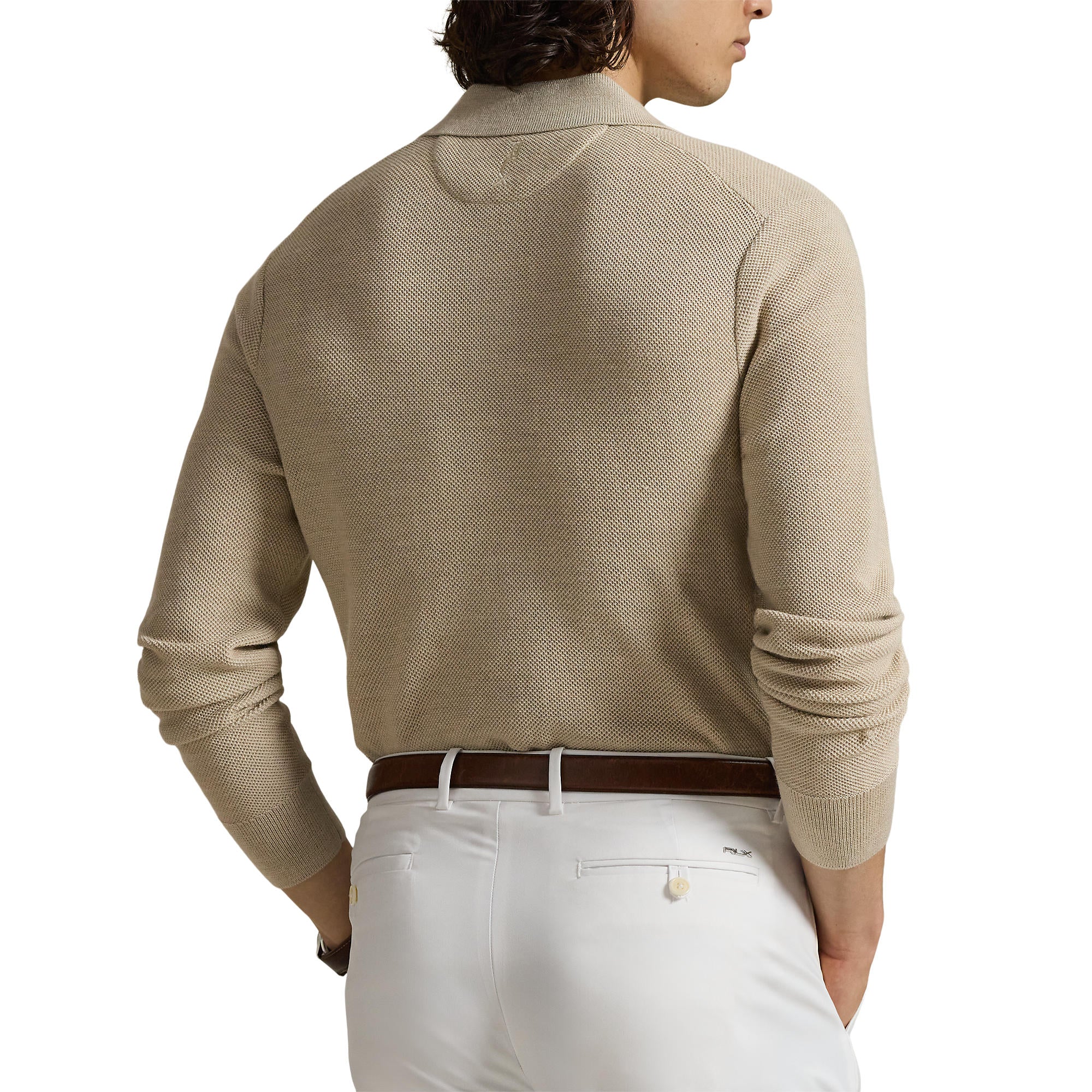 RLX Ralph Lauren Performance Polo-Collar Golf Sweater - Ecru Tan Heather