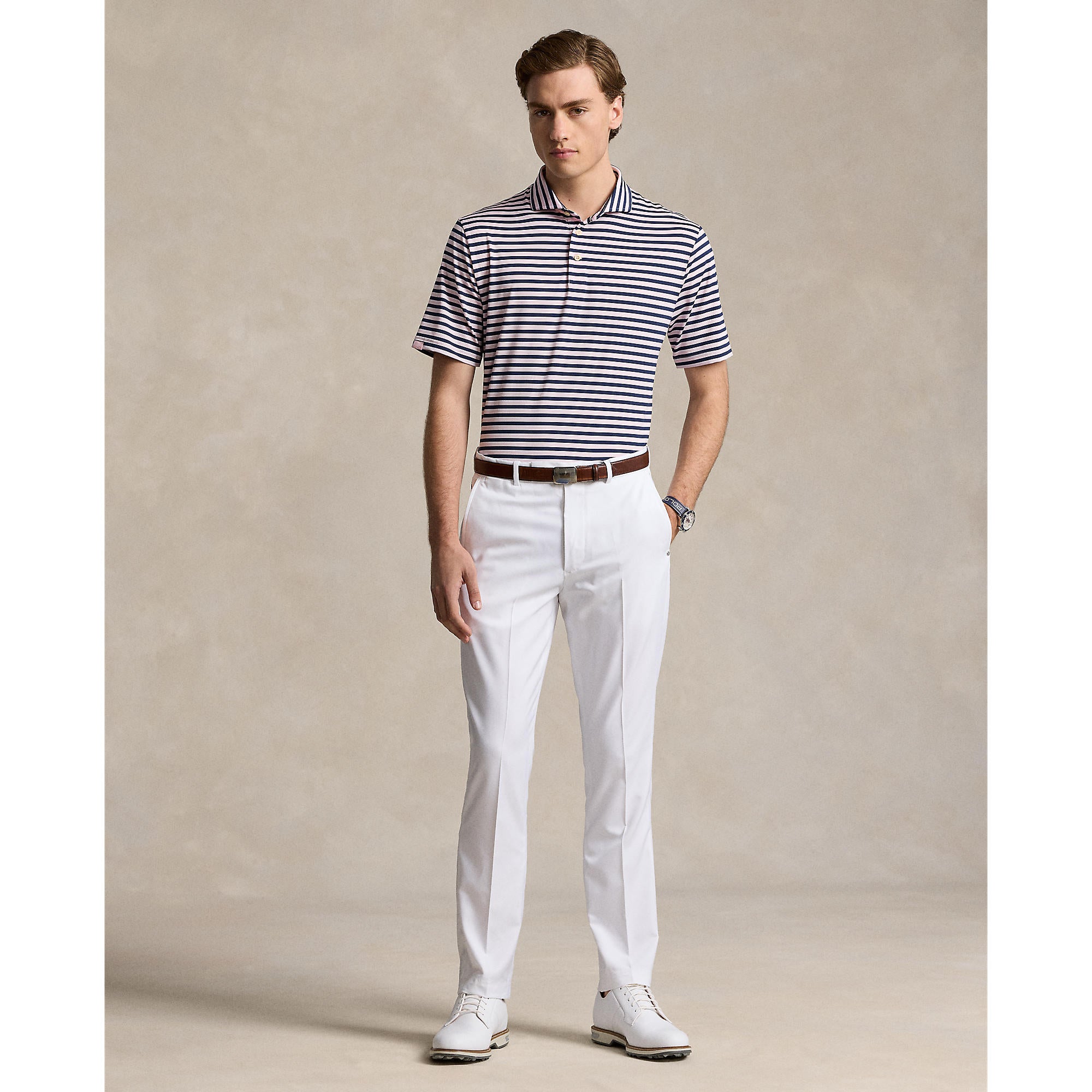 Timeless Stripes with Lightweight Performance The RLX Ralph Lauren Stripe Lightweight Airflow Golf Polo Shirt in Bath Pink Multi offers a classic design with modern performance features. Crafted from stretch jersey fabric, this polo is equipped with moisture-wicking technology to keep you cool, dry, and comfortable throughout your game. The vibrant striped pattern adds a stylish touch, making it a standout piece on and off the course.