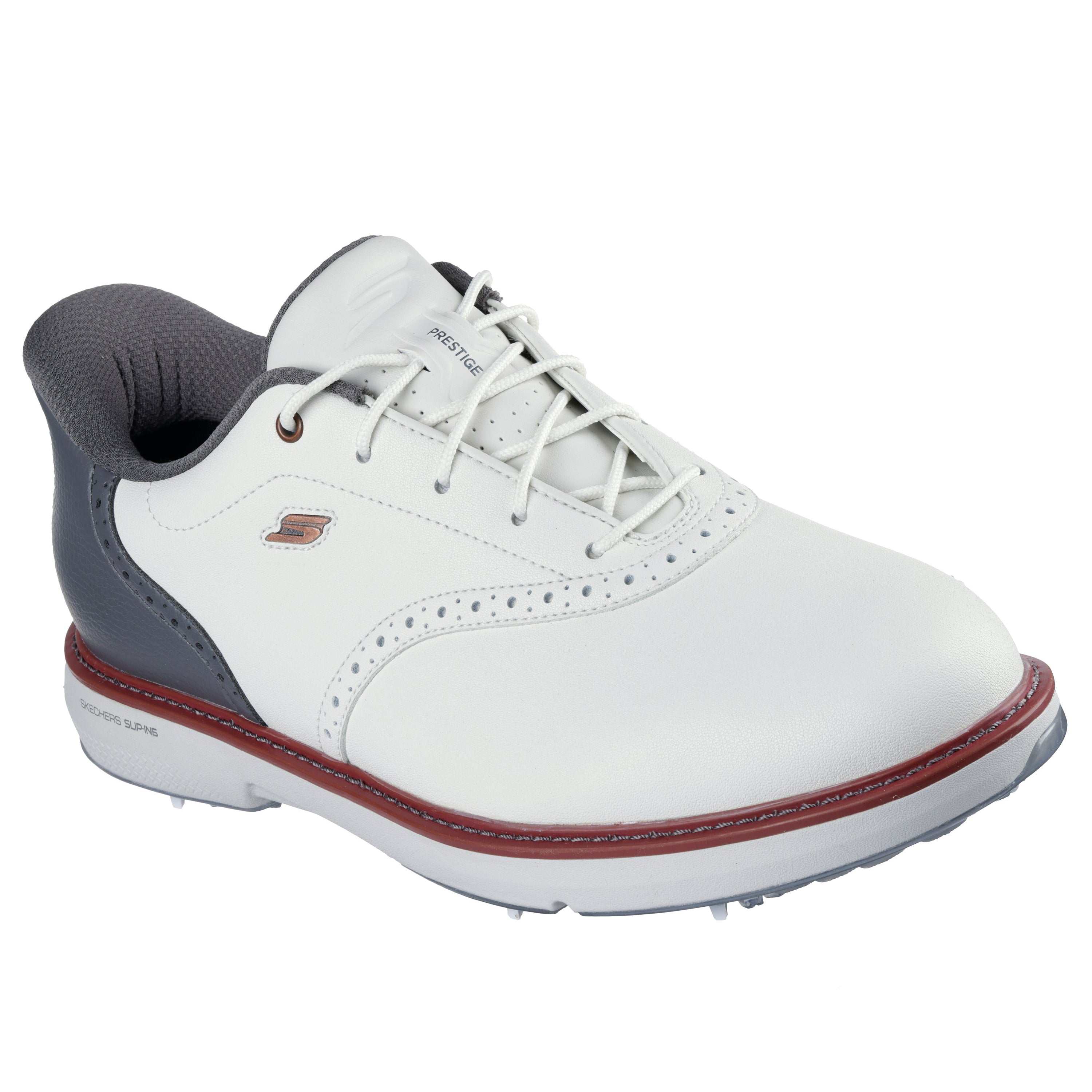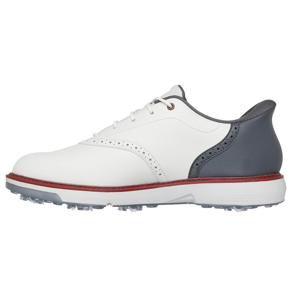 -Classic lace-up leather upper with detailed saddle oxford styling -Padded collar and tongue for extra comfort -Skechers GO GOLF® logo detail for a sophisticated and refined look