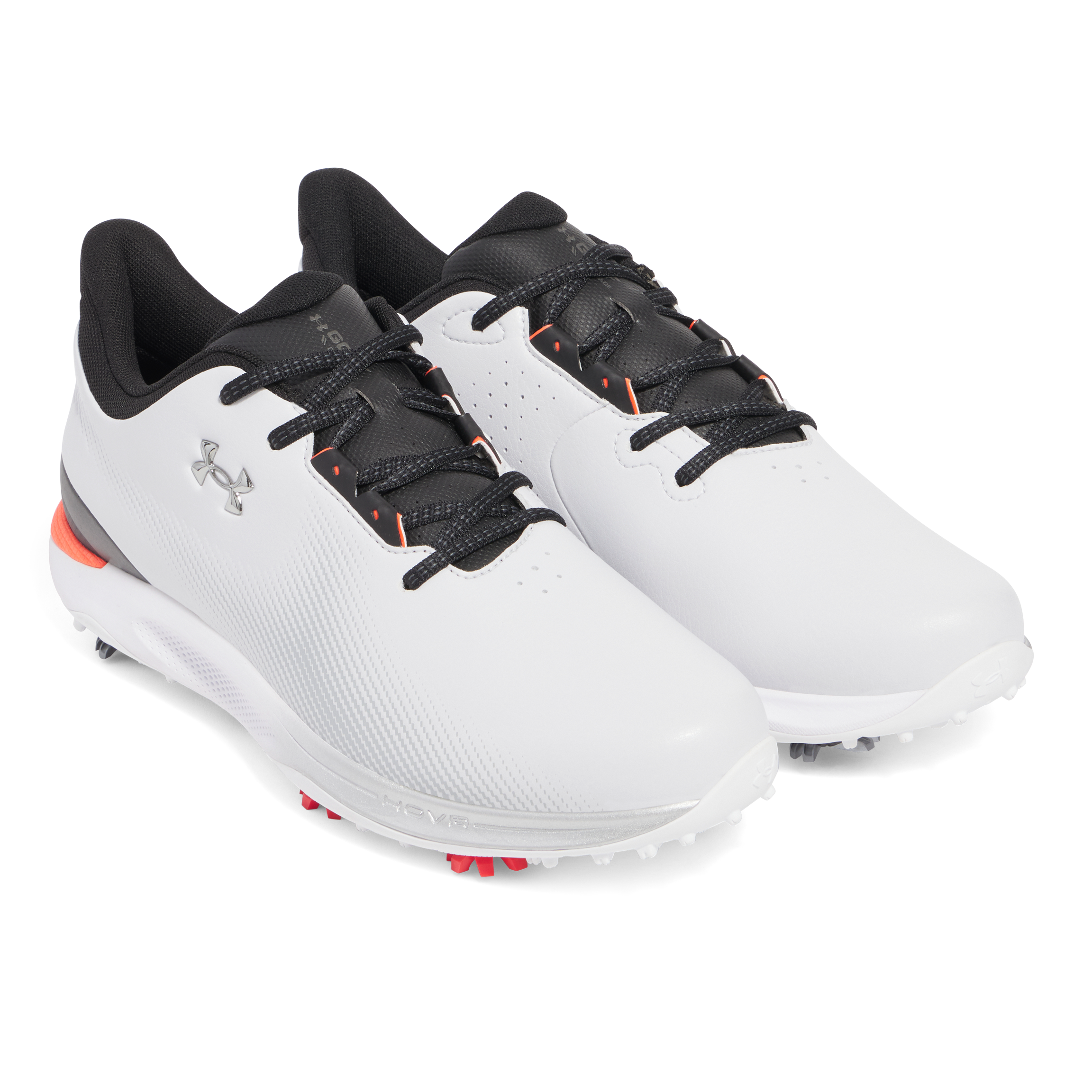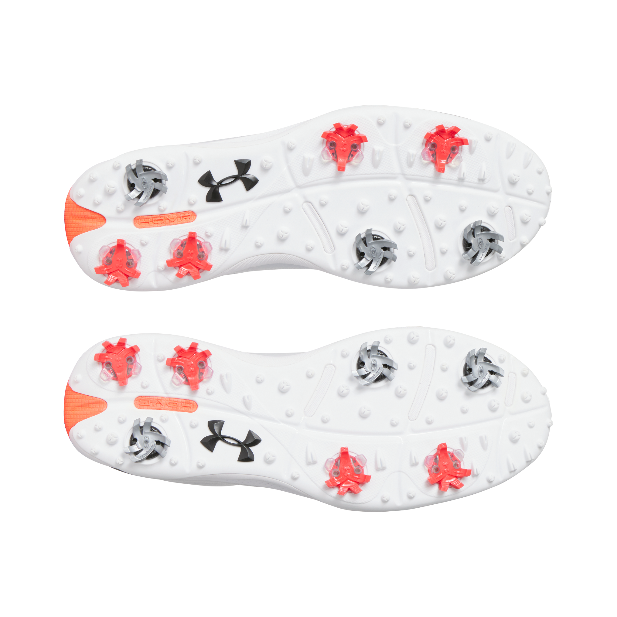 -Durable, waterproof microfiber upper is breathable, soft & comfortable to keep you cool & dry -Molded sockliner for enhanced fit & comfort -UA HOVR™ cushioning in the heel helps eliminate impact -New UA S3 spikes—designed with Softspikes® & a golf biomechanist—for game-changing directional traction -Lightweight, durable & flexible TPU outsole -Wide