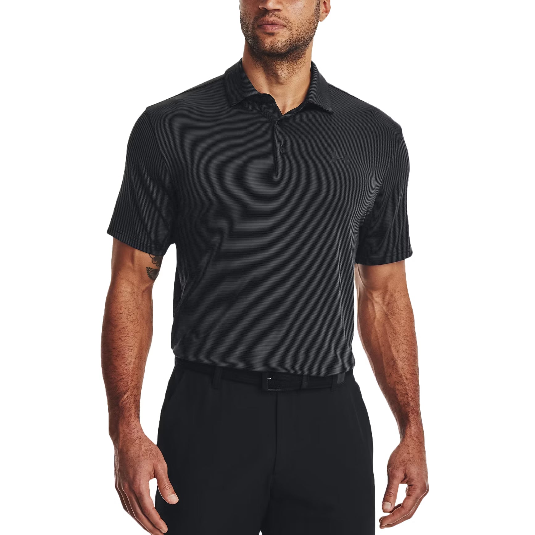 Under Armour Playoff 3.0 Stripe Polo Golf Shirt - Black/Pitch Grey