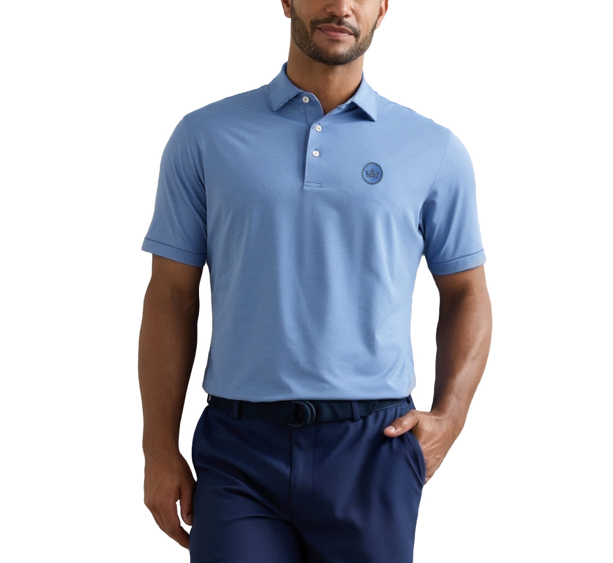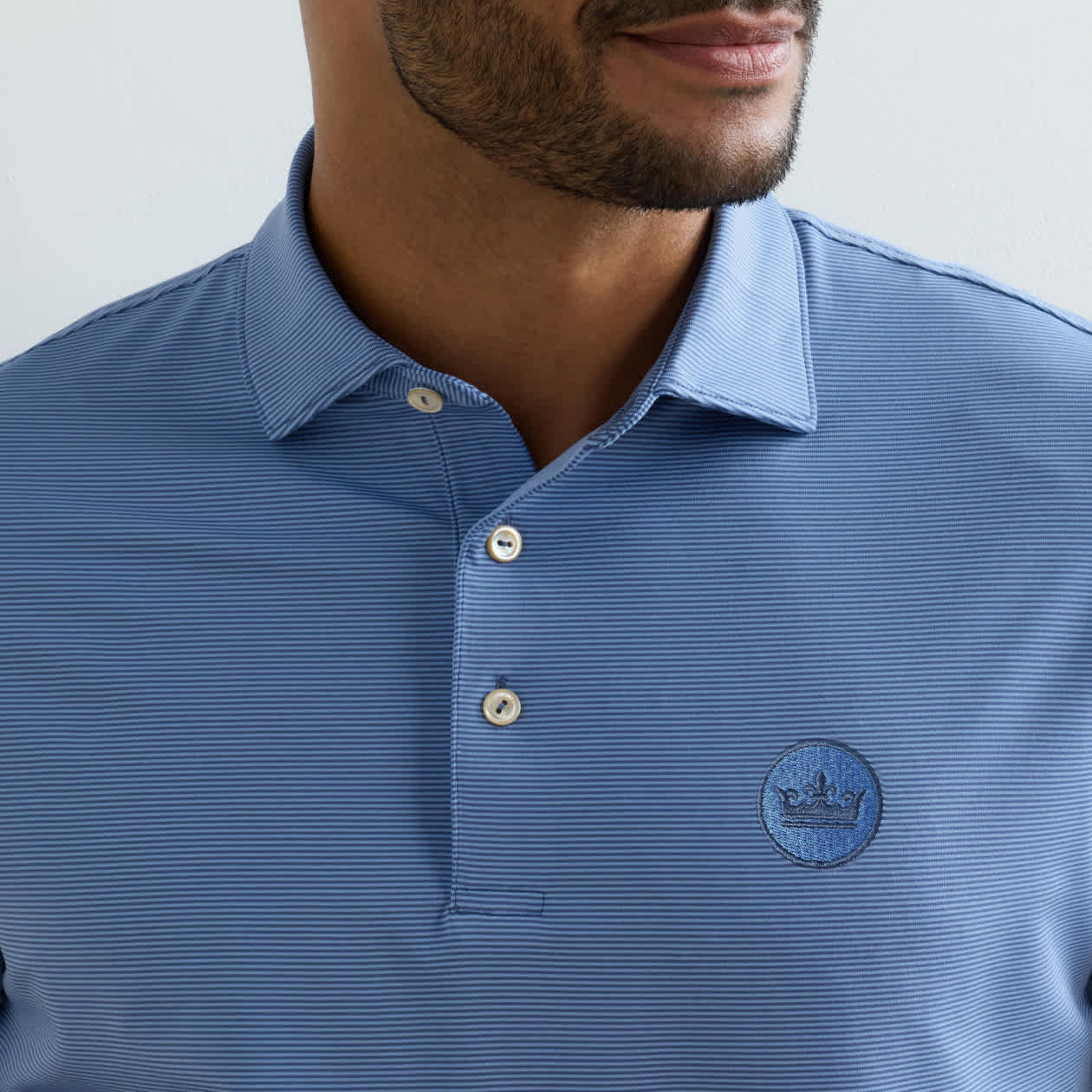 Peter Millar Jubilee Performance 平纹针织条纹高尔夫 Polo 衫 - 温莎蓝/蓝鸟