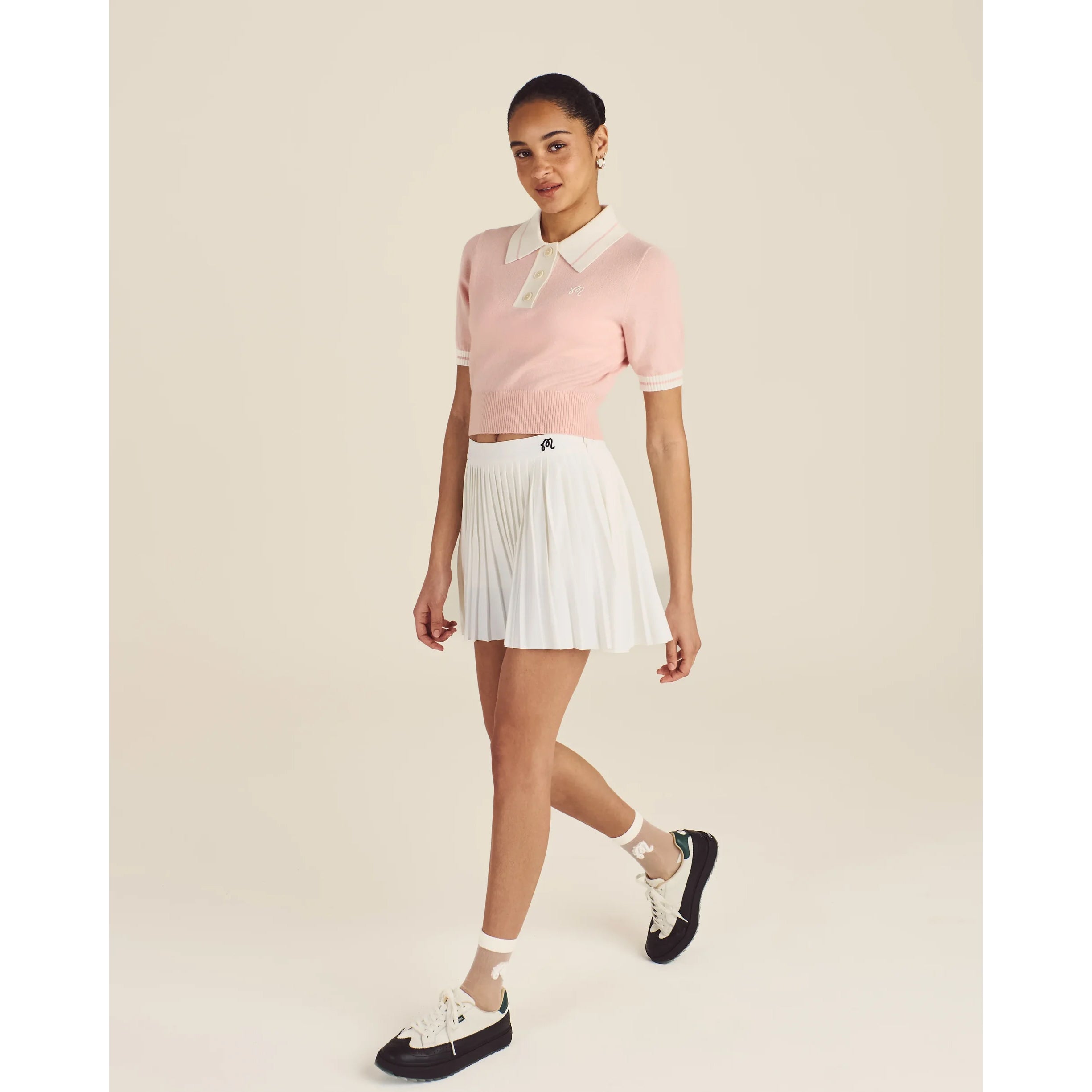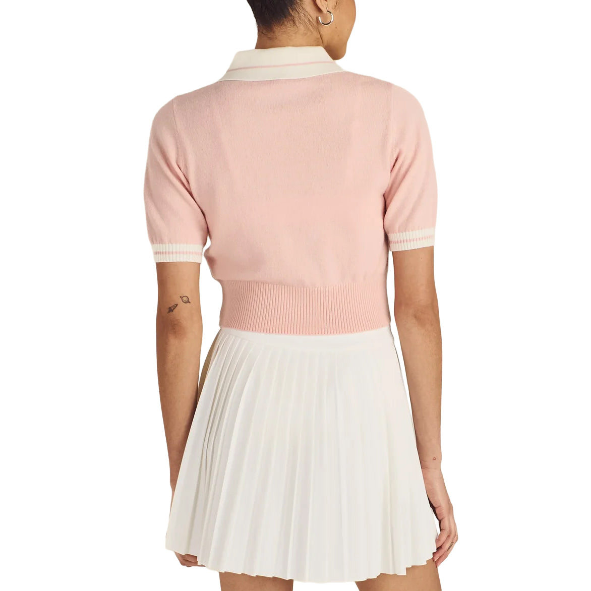 Mikayla 針織 Polo 衫採用柔軟的羊毛和羊絨混紡面料製成,將性能與低調風格融為一體。無袖剪裁增強了揮桿的靈活性,經典廓形展現了微妙的品牌標誌,可與任何服飾搭配。